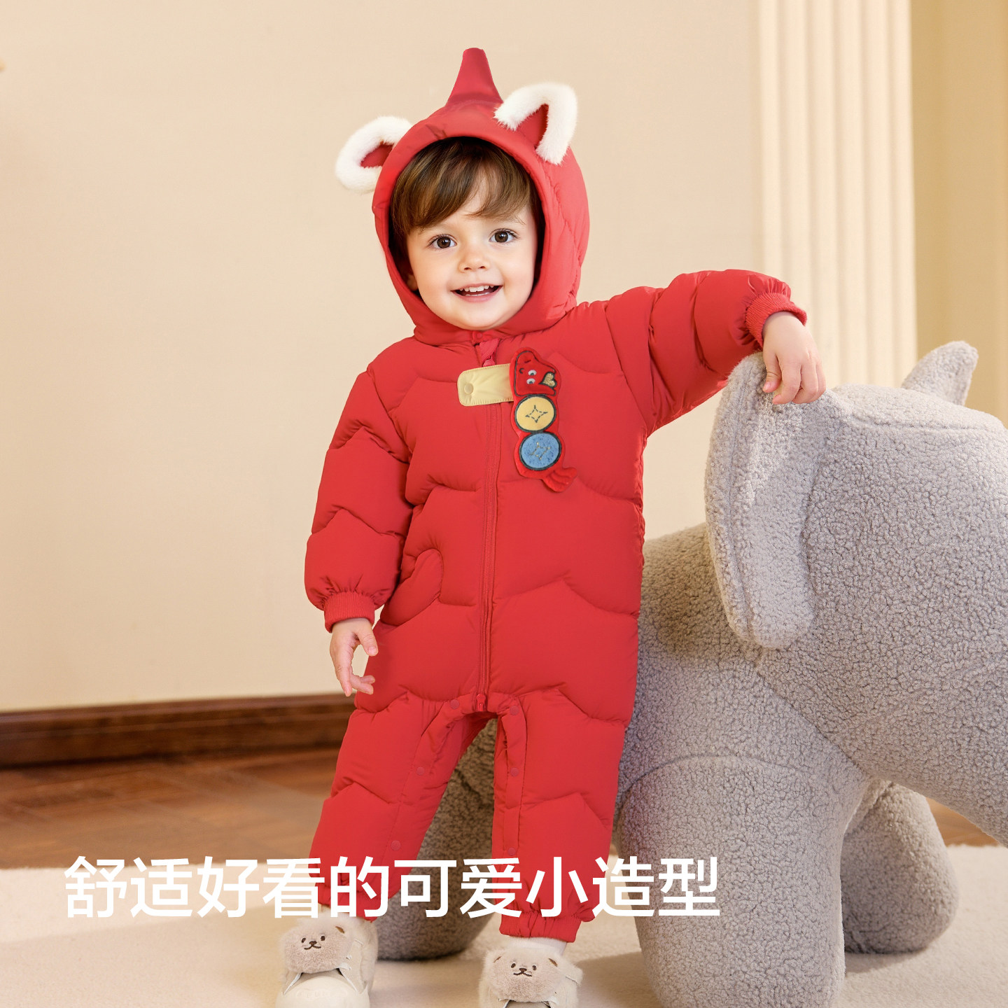 【商场同款】巴拉巴拉婴儿羽绒连体衣宝宝衣服外出爬服红色拜年服