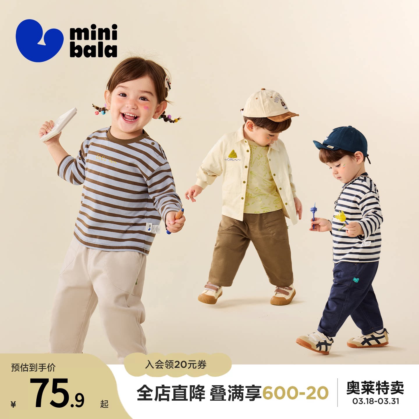 【吸湿速干】迷你巴拉巴拉男女宝宝裤子男女童宽松萝卜裤棉质长裤