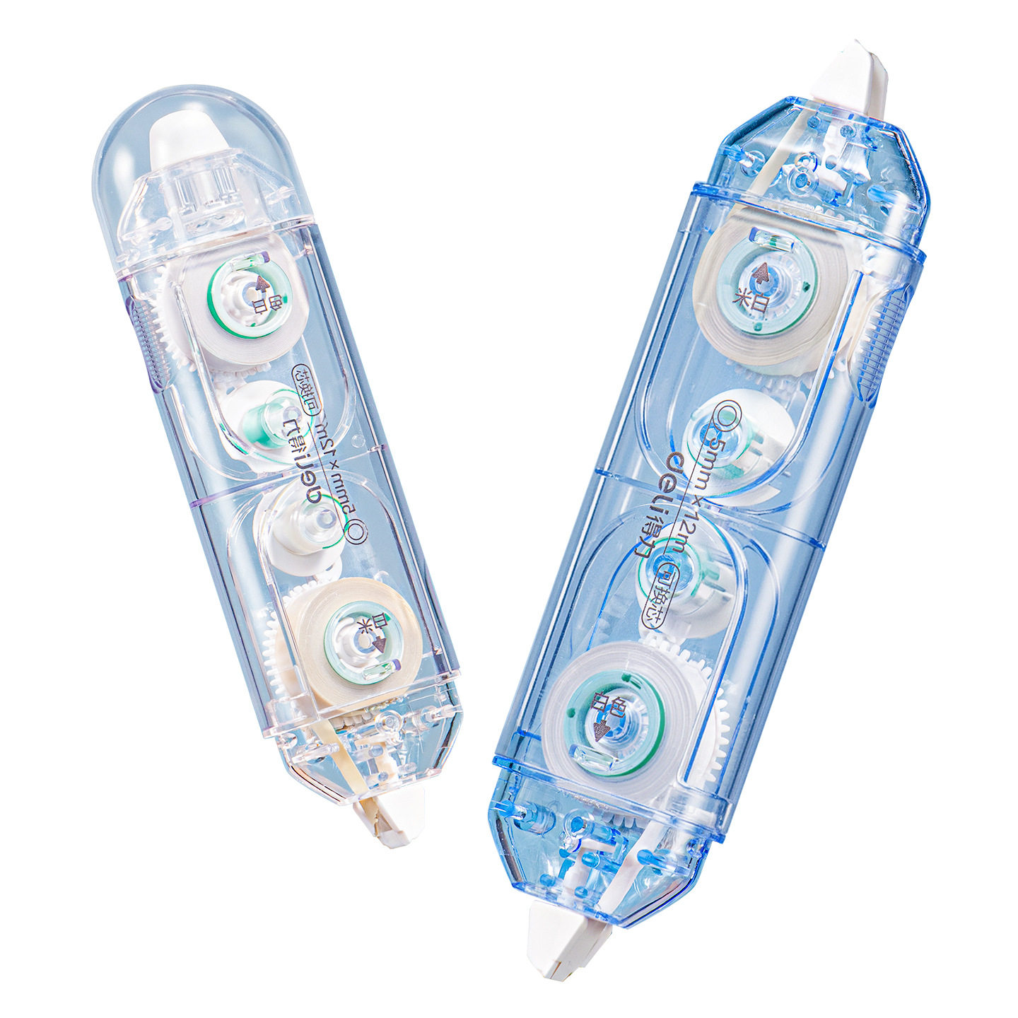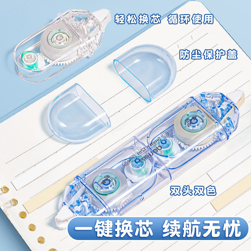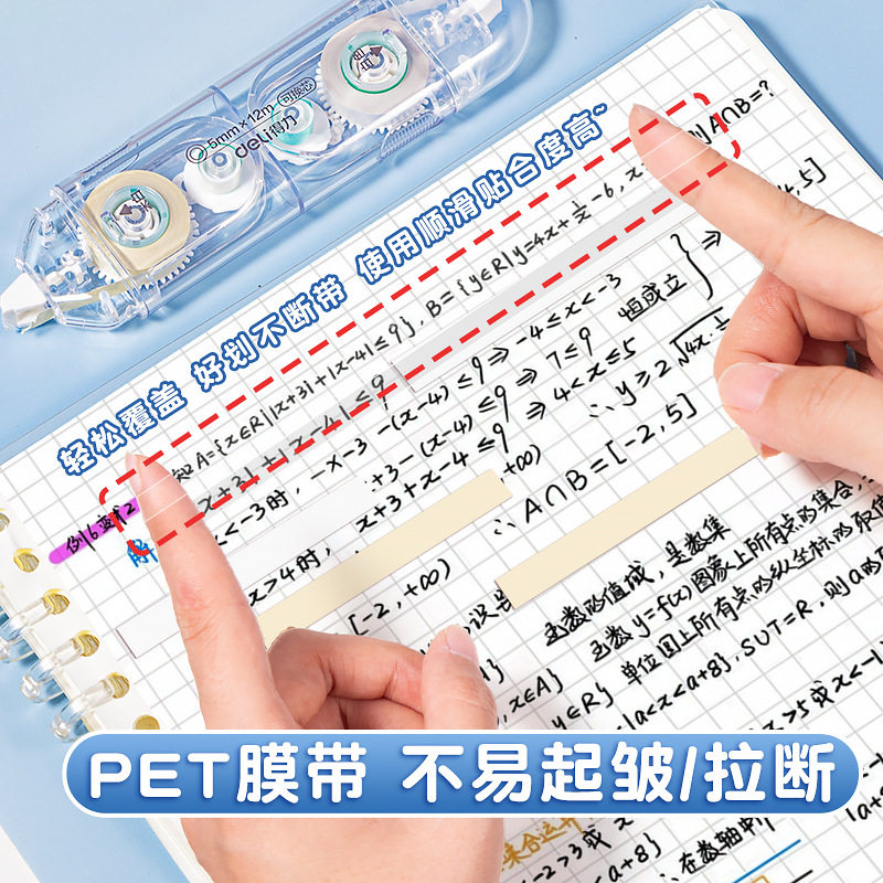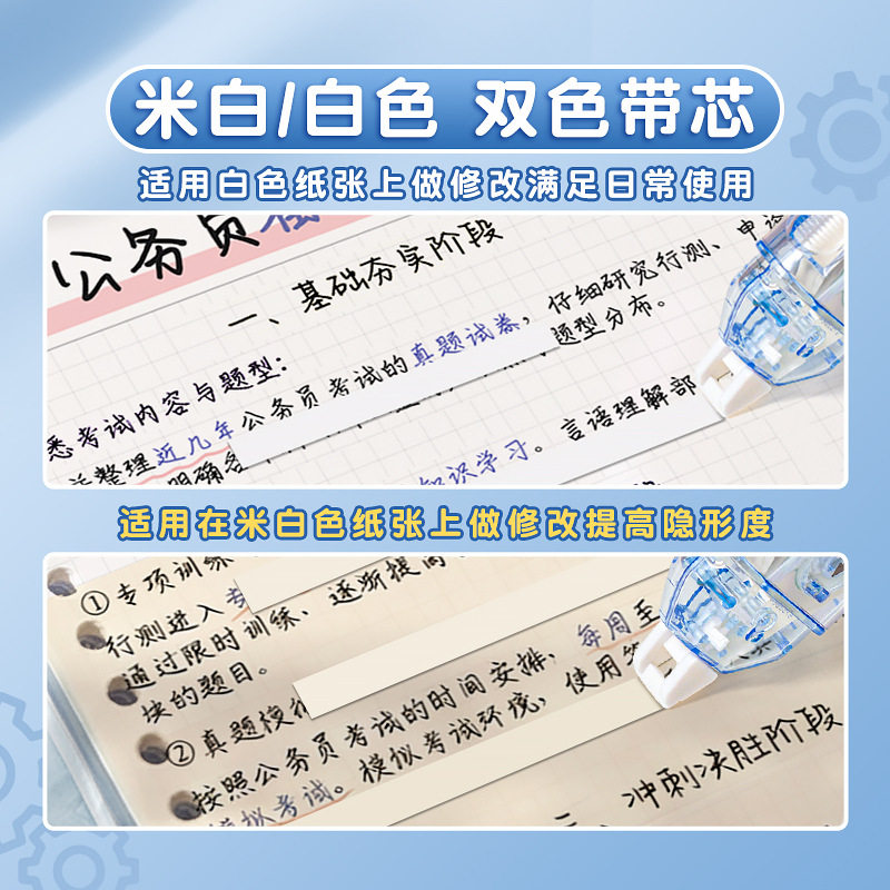 得力原纸色修正带可换替芯双色隐形改正带小学生涂改带ins高颜值