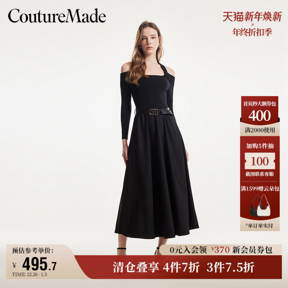 CoutureMade奥莱连衣裙秋季新款优雅简约针织拼接气质挂脖长裙子