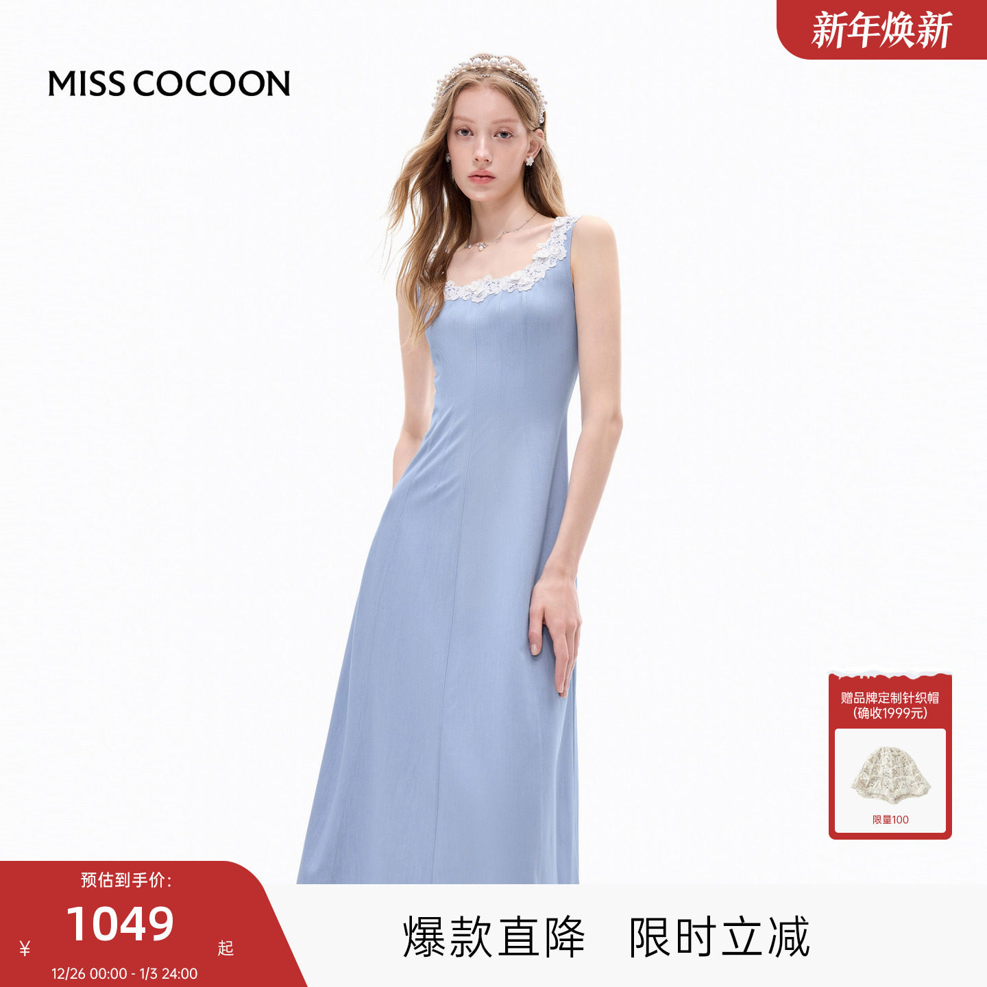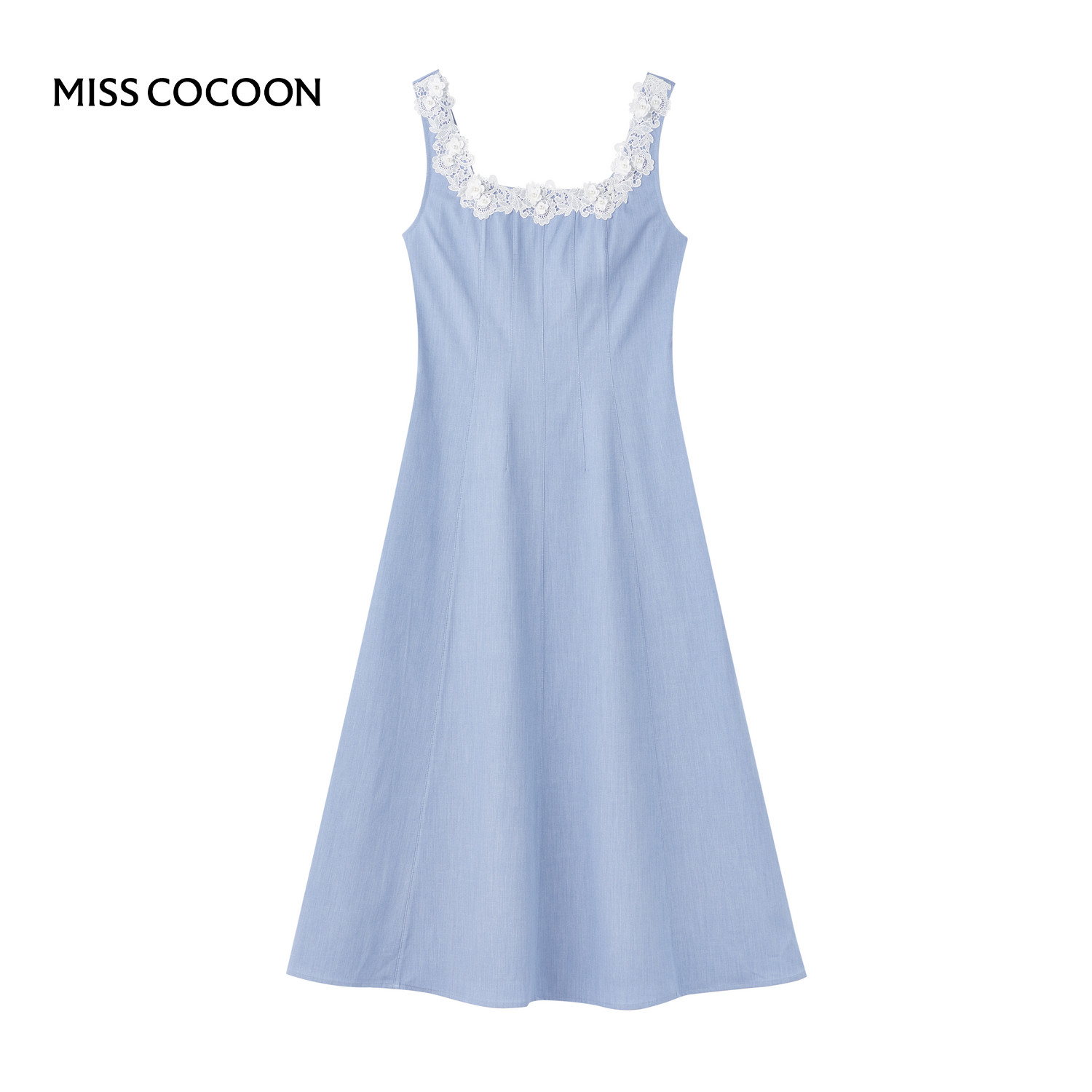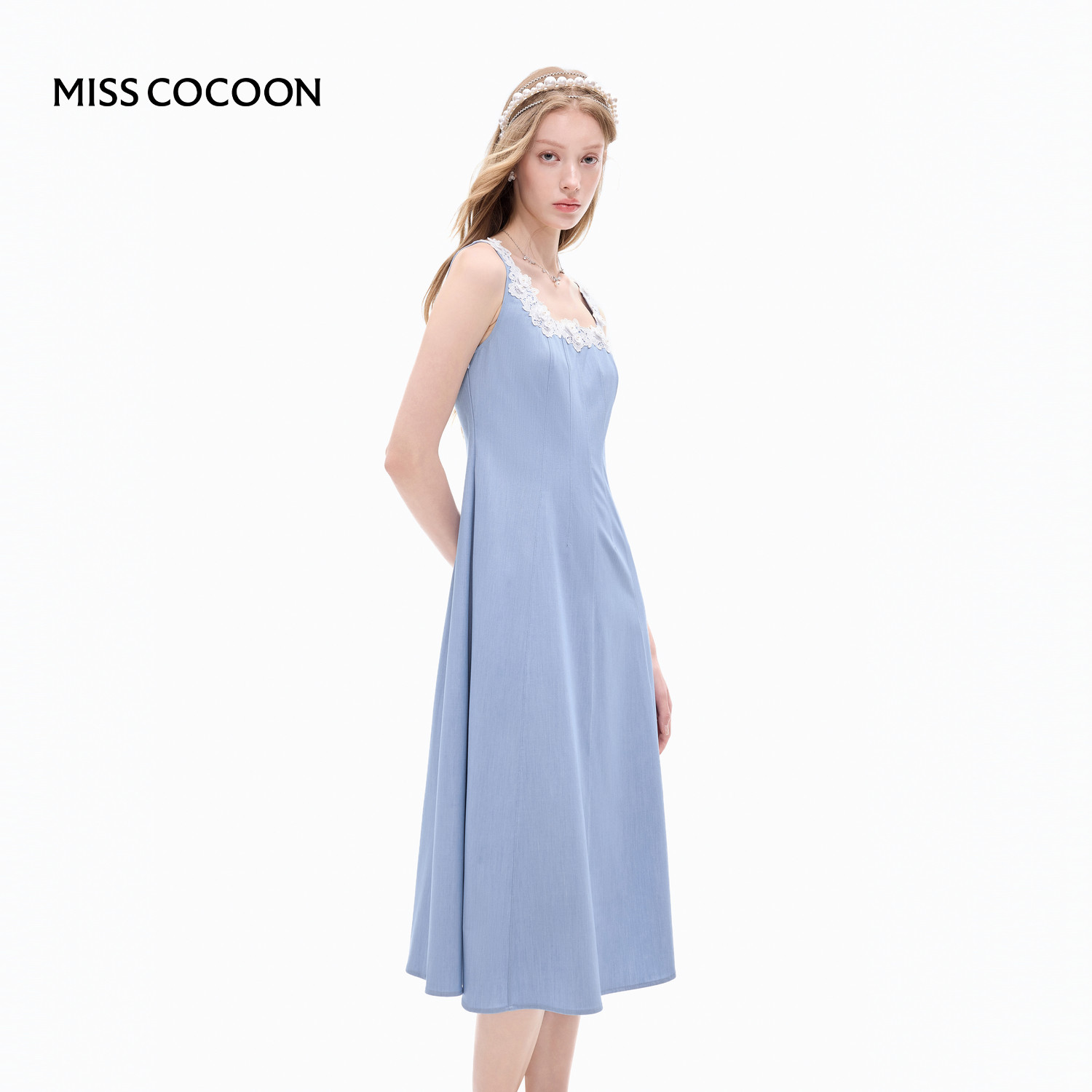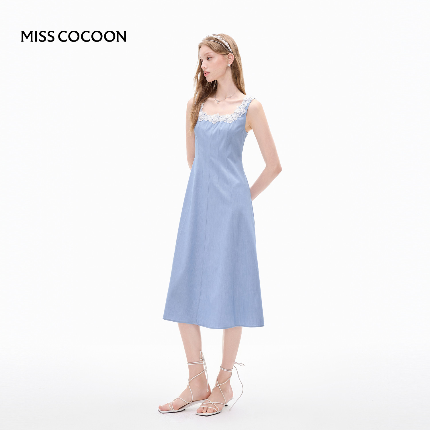 MISSCOCOON可可尼大U领仿牛仔连衣裙2025秋季新款A字显瘦裙子女