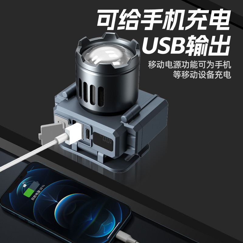头灯2025新款强光超亮超长续航充电头戴式工地矿灯感应夜钓鱼专用