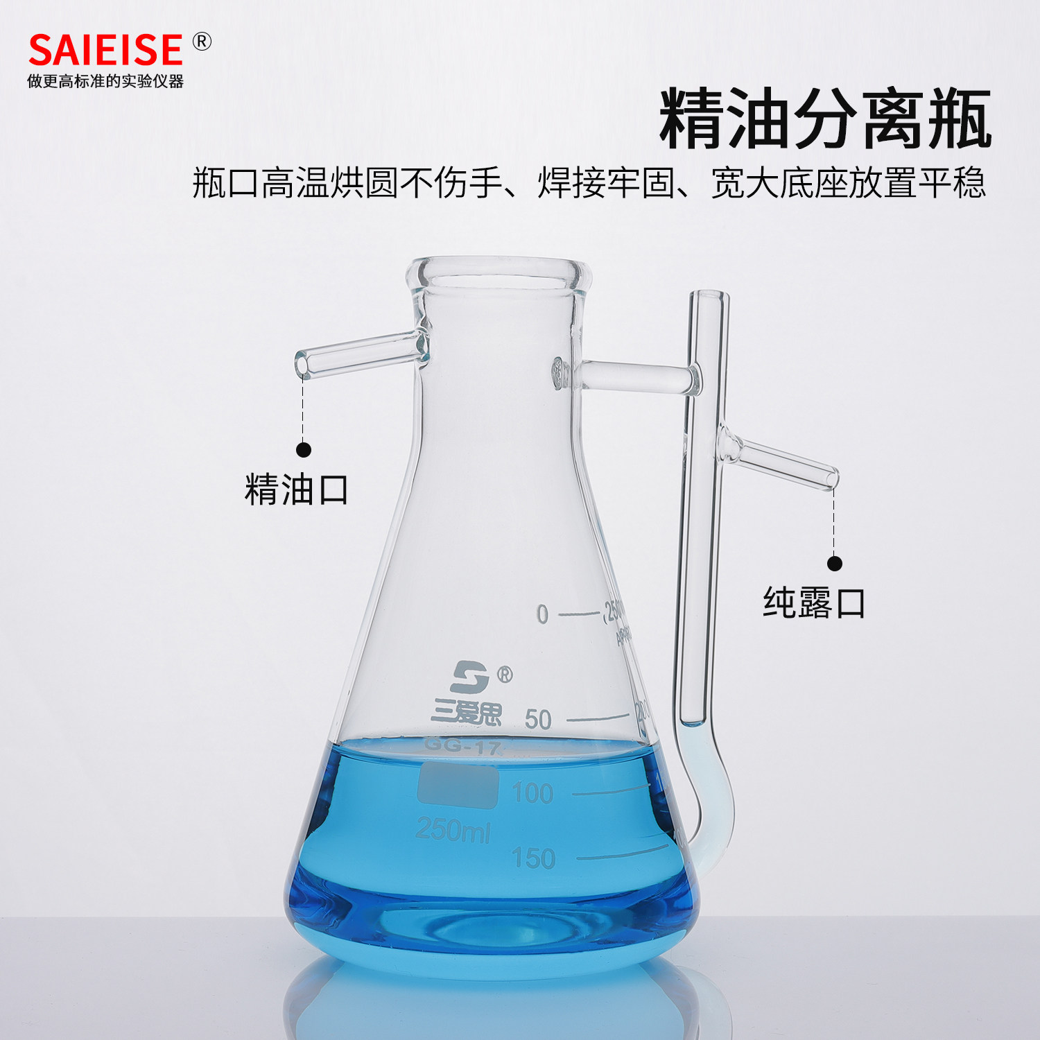 三爱思高硼硅精油纯露分离器250ml500ml1000ml2000ml3000ml精油收集器瓶玻璃油水分离器纯露精油管实验器材