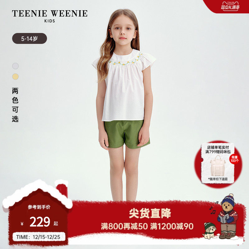 TeenieWeenie Kids小熊童装25年款新款女童甜美泡泡纱A版飞袖衬衫