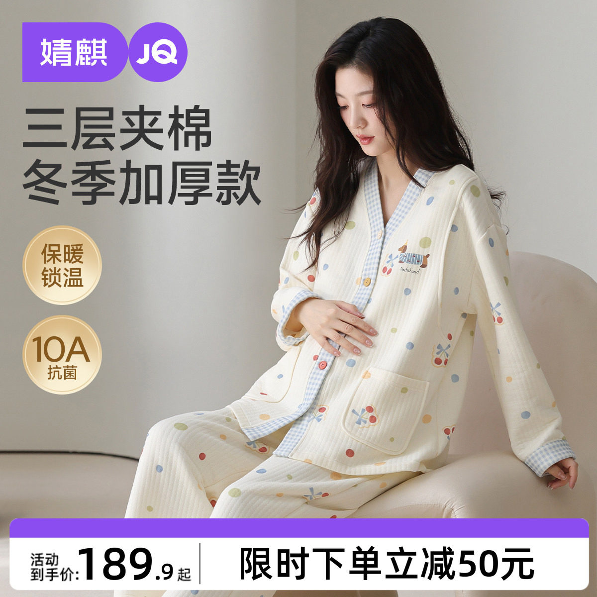 婧麒月子服孕妇冬季产后空气棉哺乳睡衣待产怀孕期家居服喂奶套装
