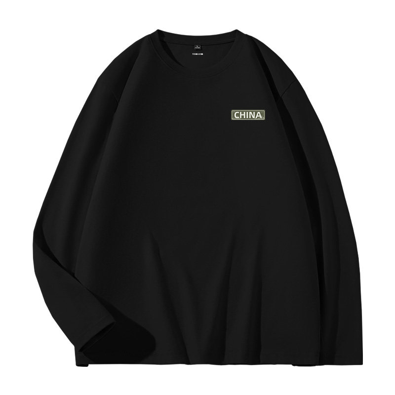 唐狮国潮黑色纯棉长袖t恤男款春秋季2025新款男士中国风打底衫YB