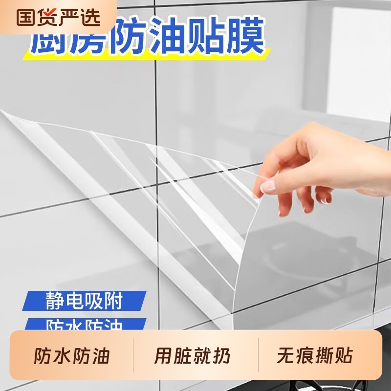 厨房吊柜防油贴纸透明静电贴膜橱柜防水防潮柜子底部防蒸汽耐高温