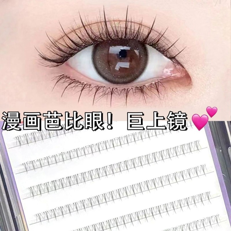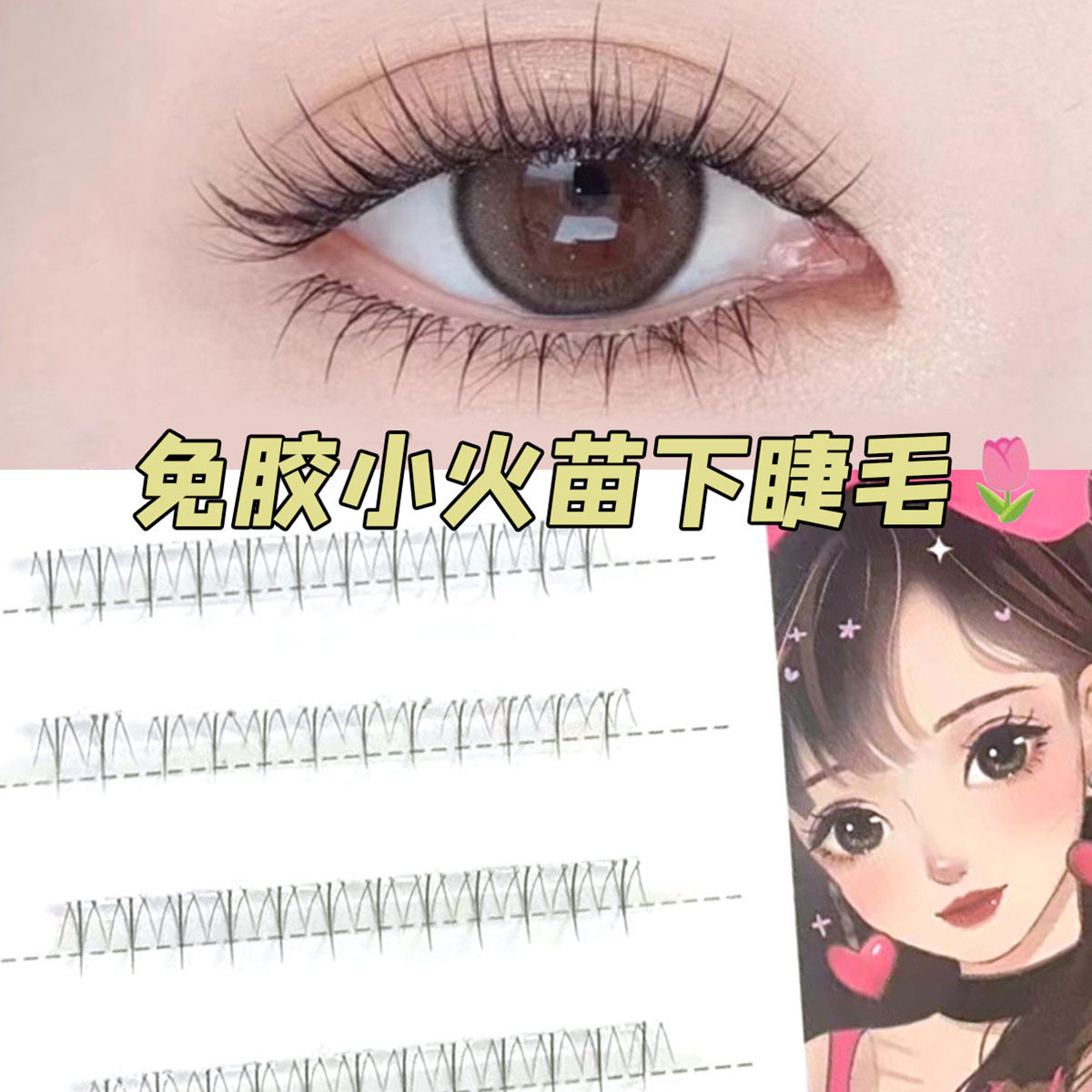 免胶小火苗下睫毛自然仿真细梗单簇嫁接假睫毛懒人新手款镊子眼尾