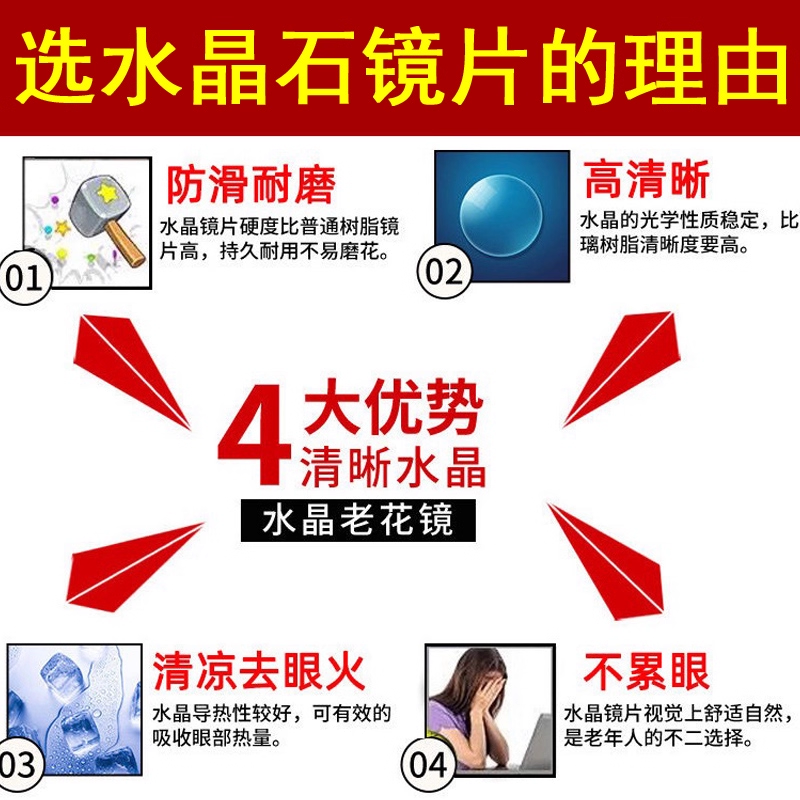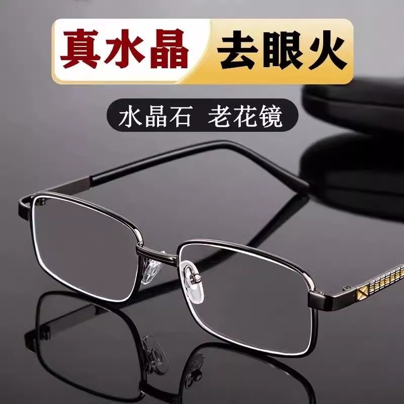 正品水晶老花镜男高档耐磨防刮老光眼镜女品牌高清护目中老年眼镜
