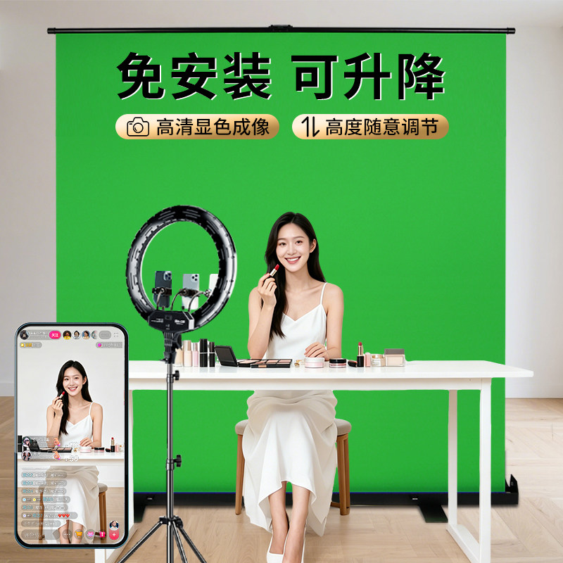 2*3M绿幕支架便携式升降绿布拍照抠像背景布直播间布置伸缩绿色地拉幕背景墙专业摄影照相抠图拍摄视频3D特效