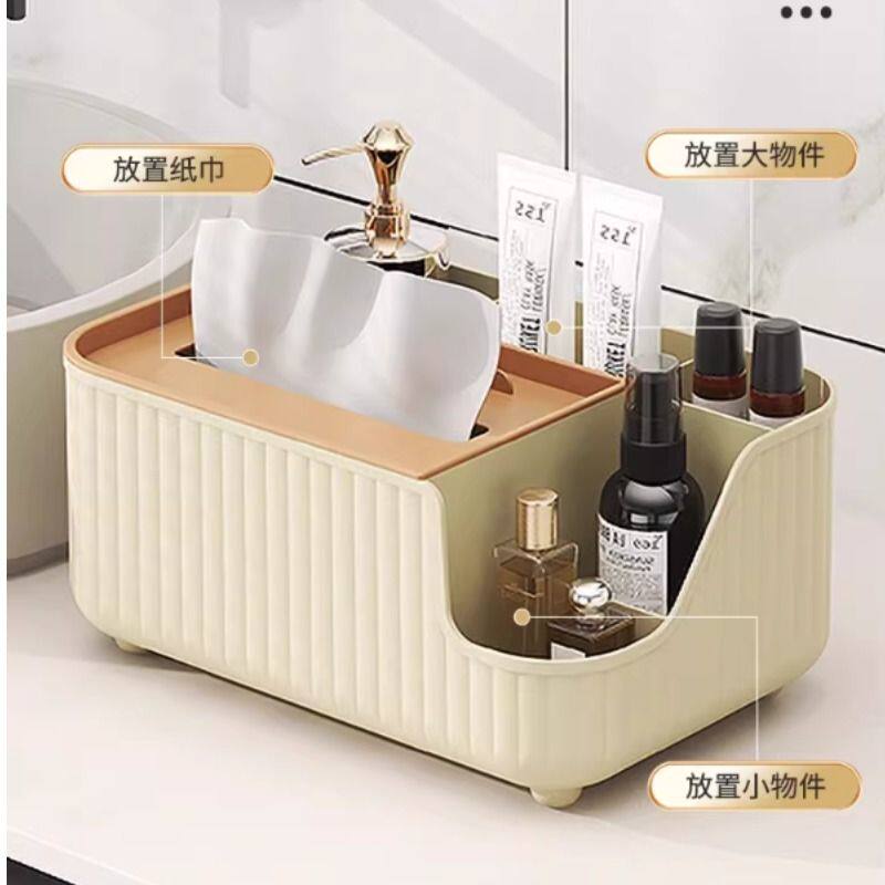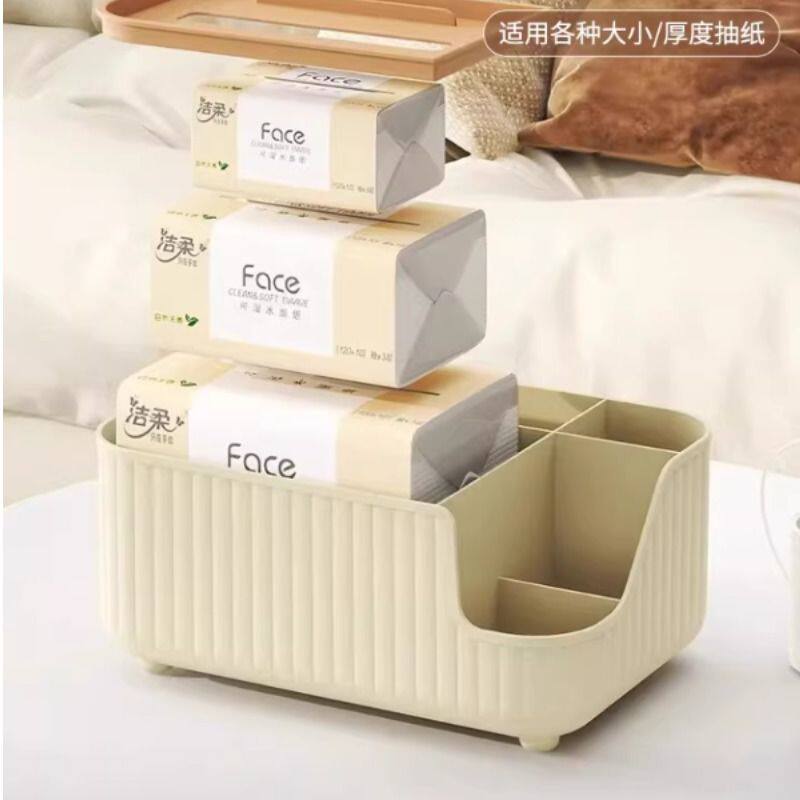 纸巾盒家用茶几客厅奶油风多格分类储物盒多功能抽纸盒多规格
