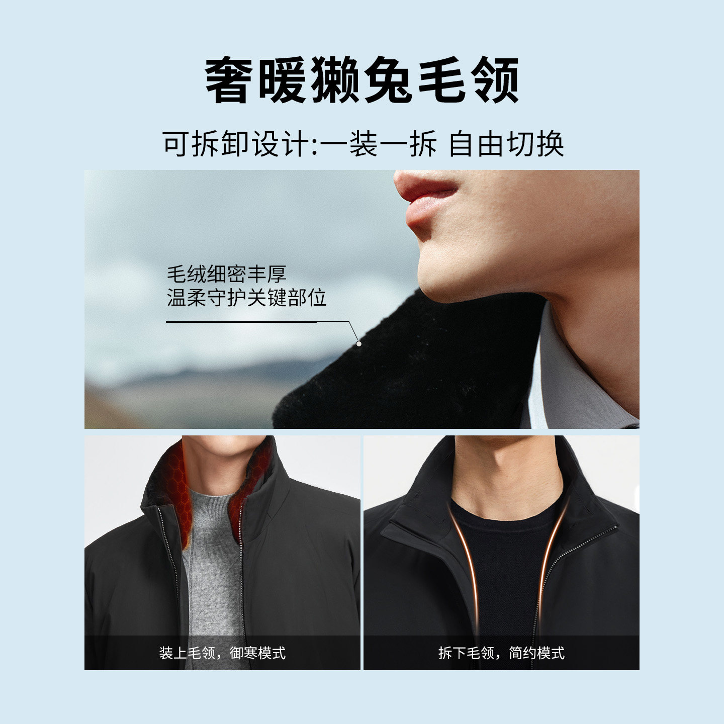 三防 抑菌鹅绒 可拆獭兔毛领
