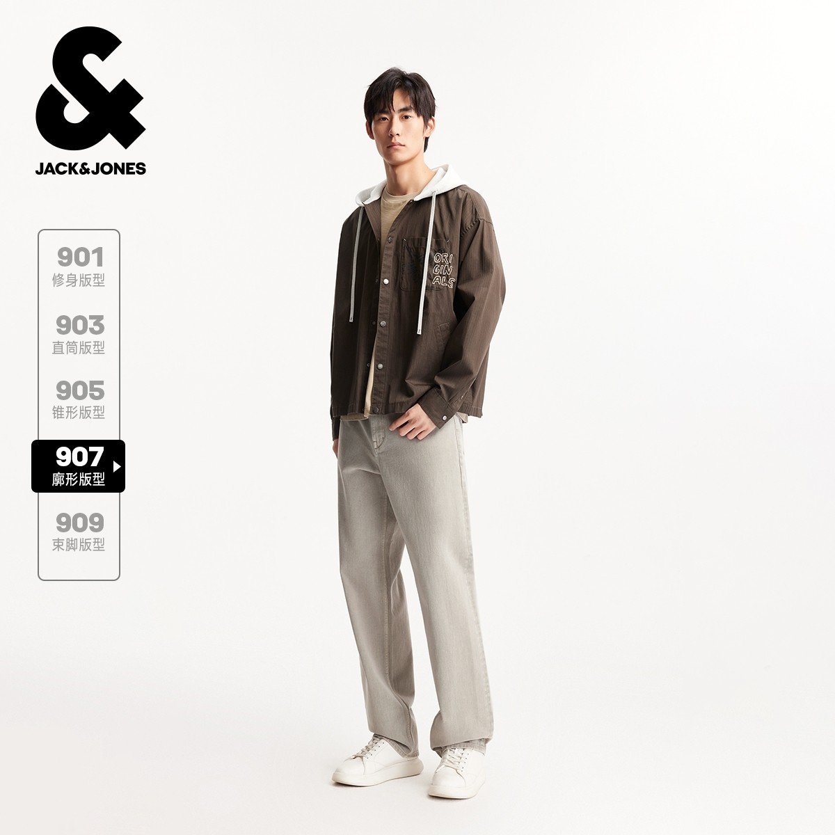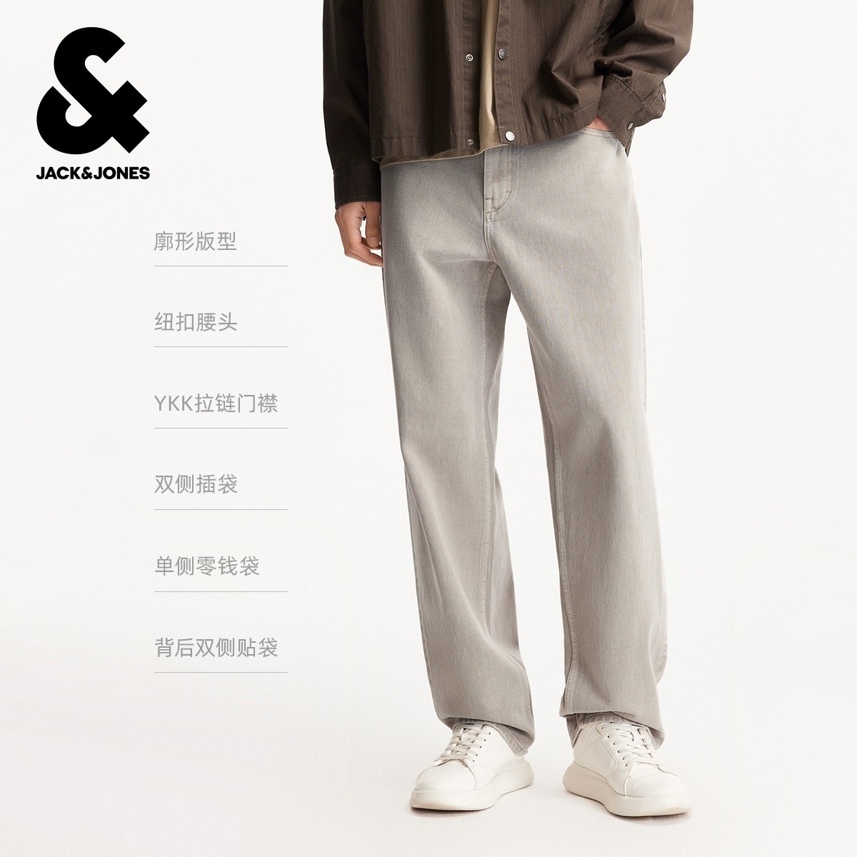 杰克琼斯春秋季男装牛仔裤长裤裤子廓形时尚百搭潮灰卡其色下装款