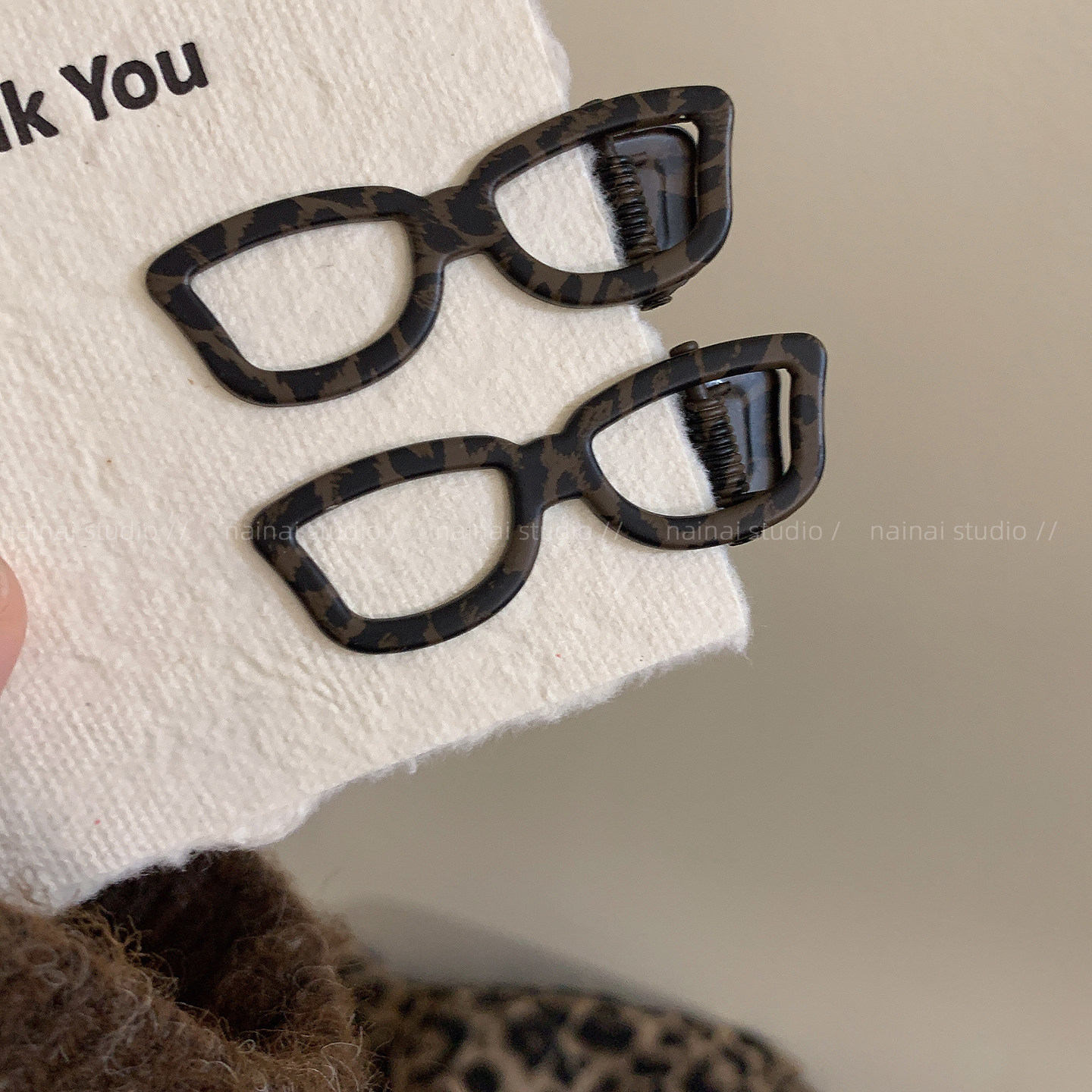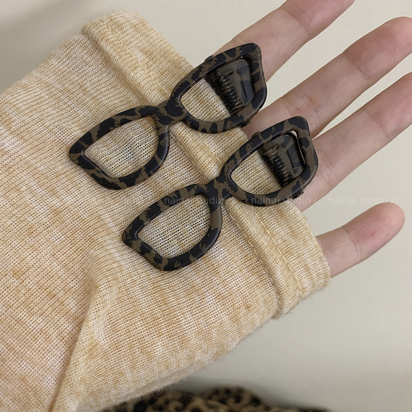 豹纹眼镜发夹~韩系小众设计复古鸭嘴夹侧边夹刘海夹发饰早秋头饰