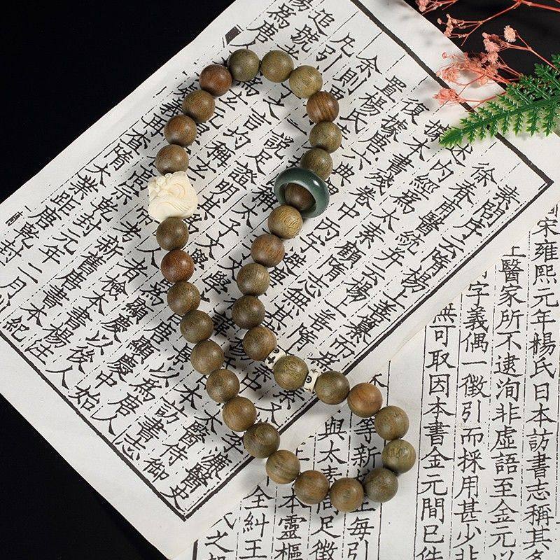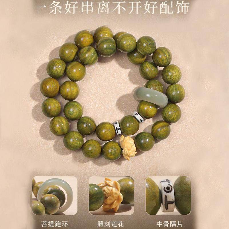 天然绿檀木手串手持李莲花楼手链跑环檀香盘玩佛珠男士女饰品双圈