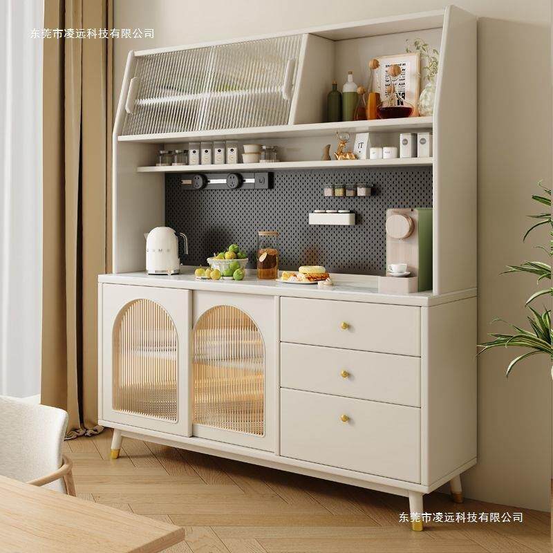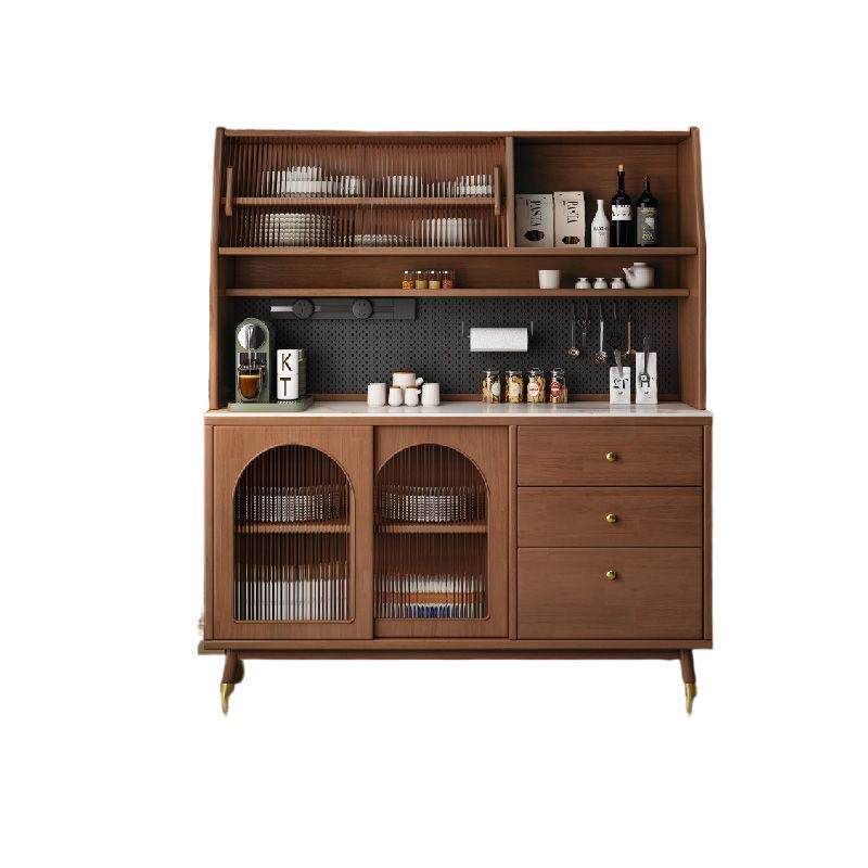 实木餐边柜中古风岩板置物柜靠墙茶水柜储物柜餐厅厨房橱柜收纳柜
