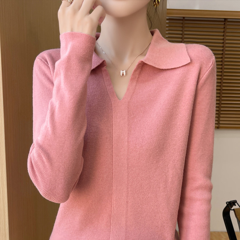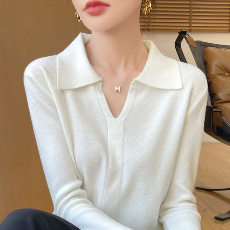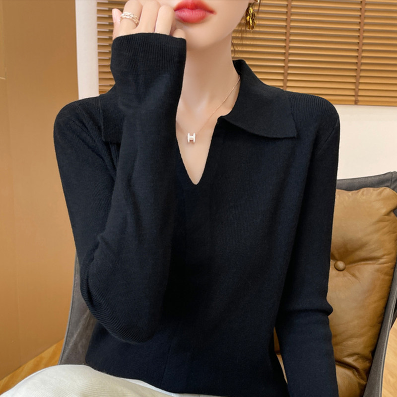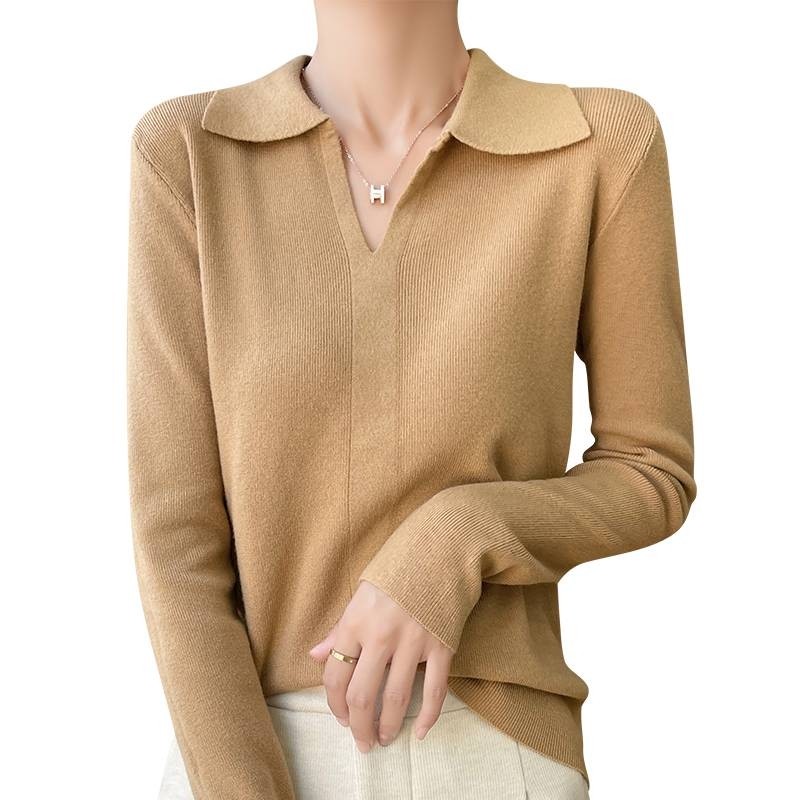 撤柜撤标(A)翻领针织打底衫女春秋流行内搭上衣洋气大码女装毛衣