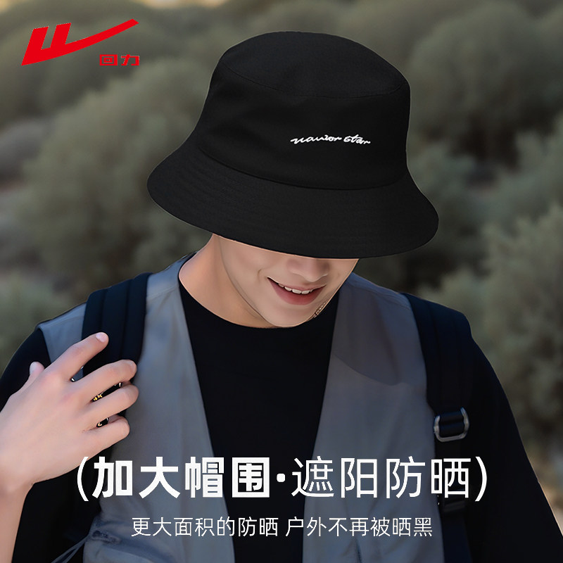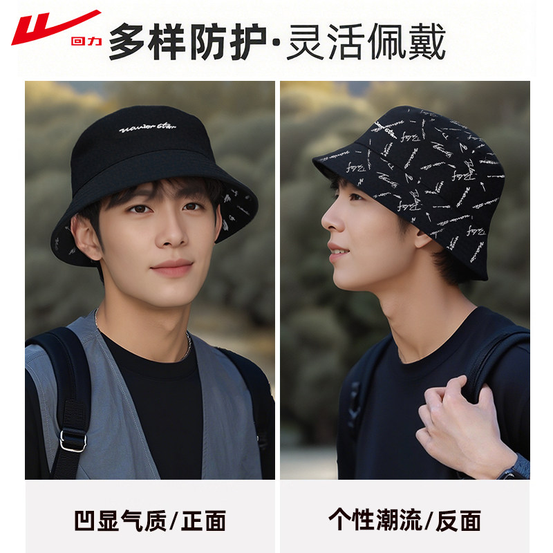 回力渔夫帽双面男遮阳防紫外线户外女韩版大头围显脸小透气百搭款