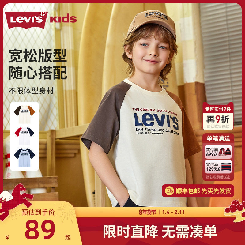 Levis李维斯2025夏季新款童装男童短袖t恤儿童半袖纯棉上衣夏装潮