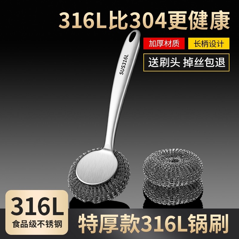 不锈钢锅刷厨房专用洗锅刷子钢丝球刷长柄清洁不掉丝刷锅神器手柄
