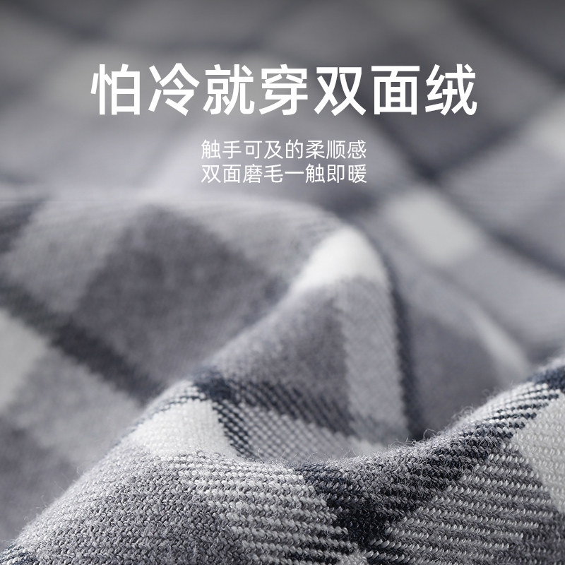 啄木鸟秋季新款男士长袖100%全纯棉磨毛格子衬衫 高级感休闲衬衣