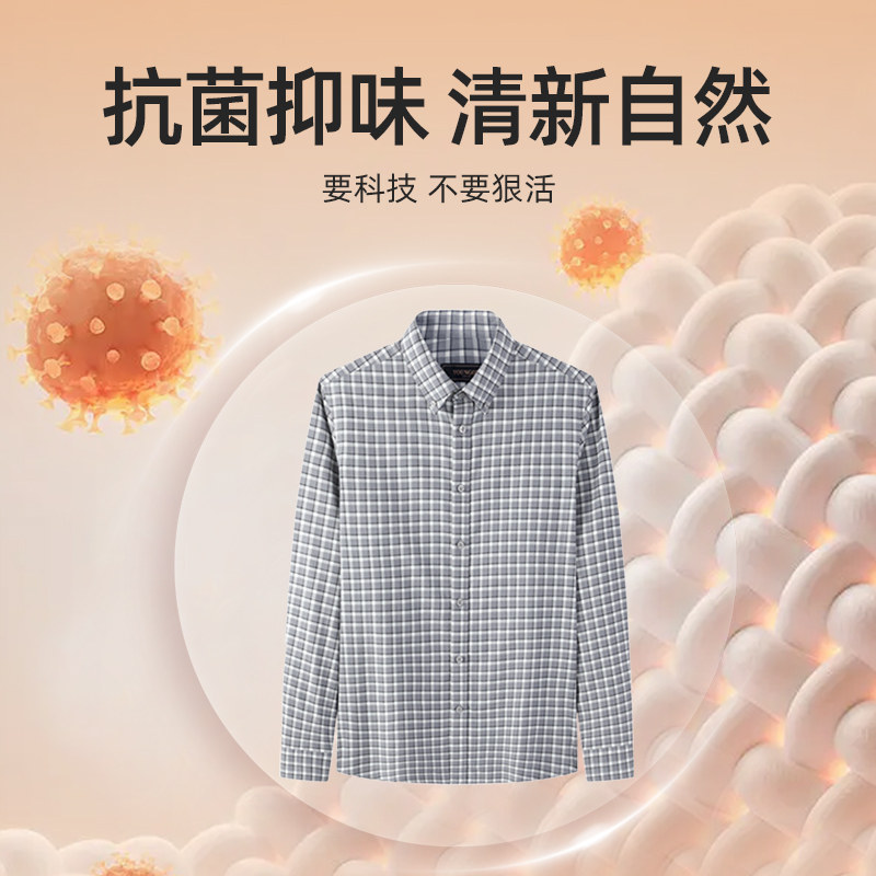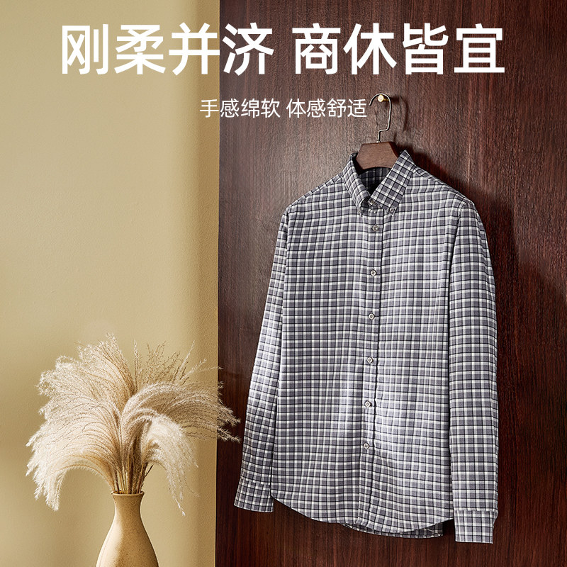 【绵羊毛抗菌】雅戈尔官方秋冬新品商务休闲通勤格纹长袖衬衫男