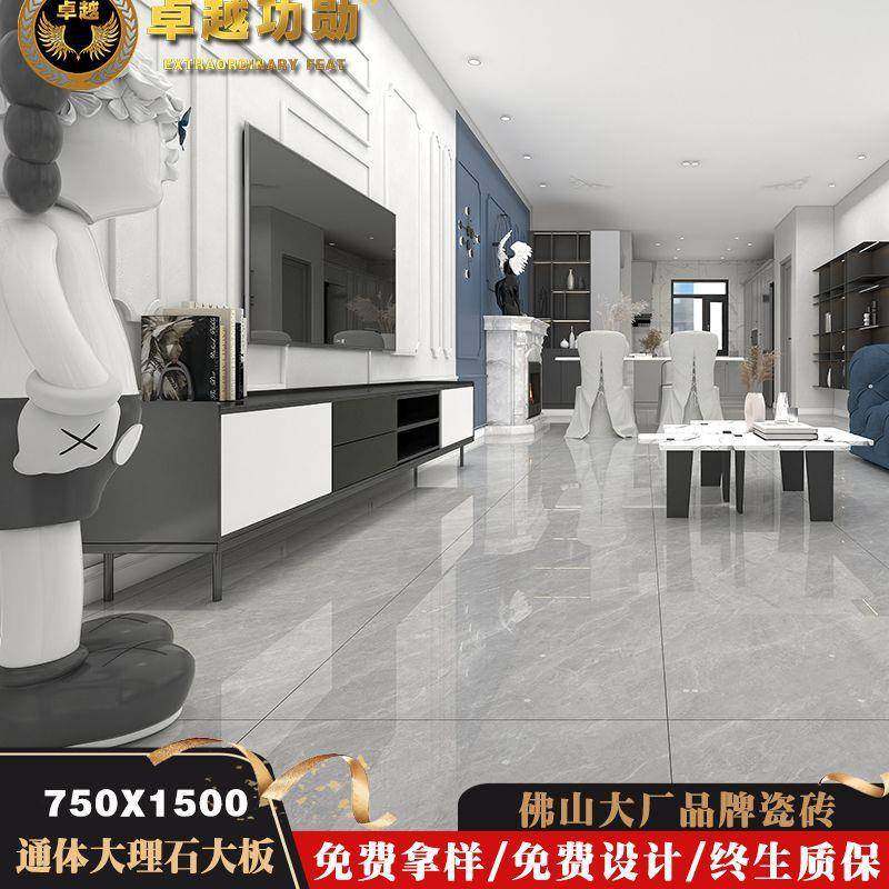 750x1500通体大理石瓷砖亮面素色简约现代客餐厅卧室厨房地板砖