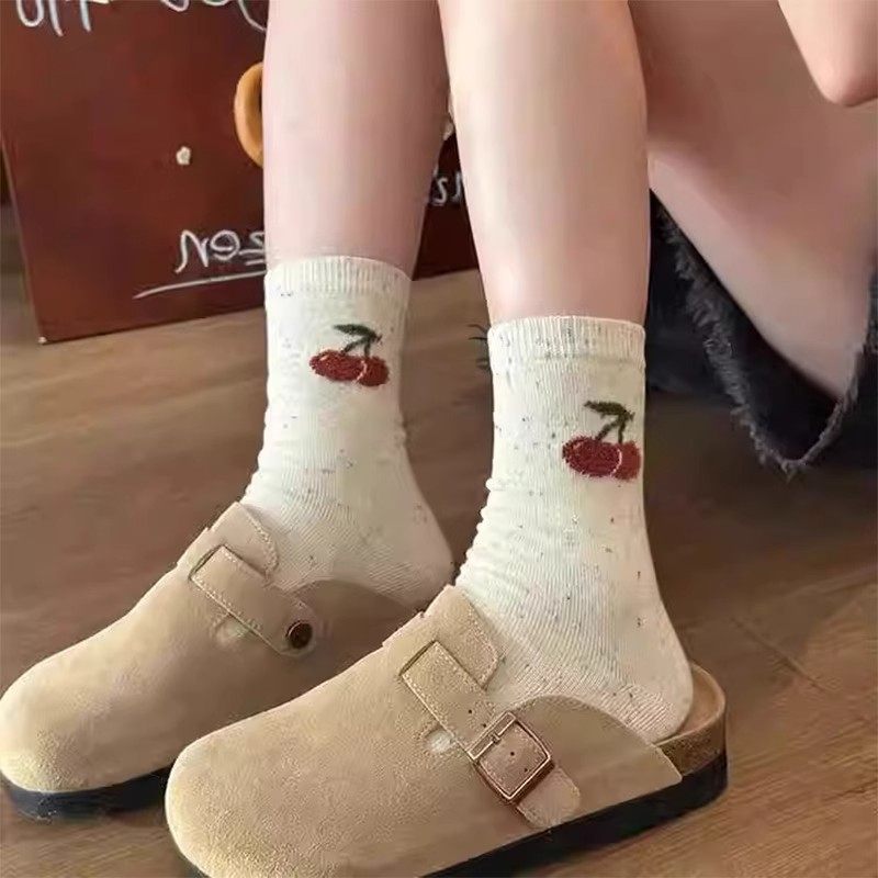 点子纱中筒袜子女可爱春秋款韩系ins潮小熊卡通日系防臭长袜夏天