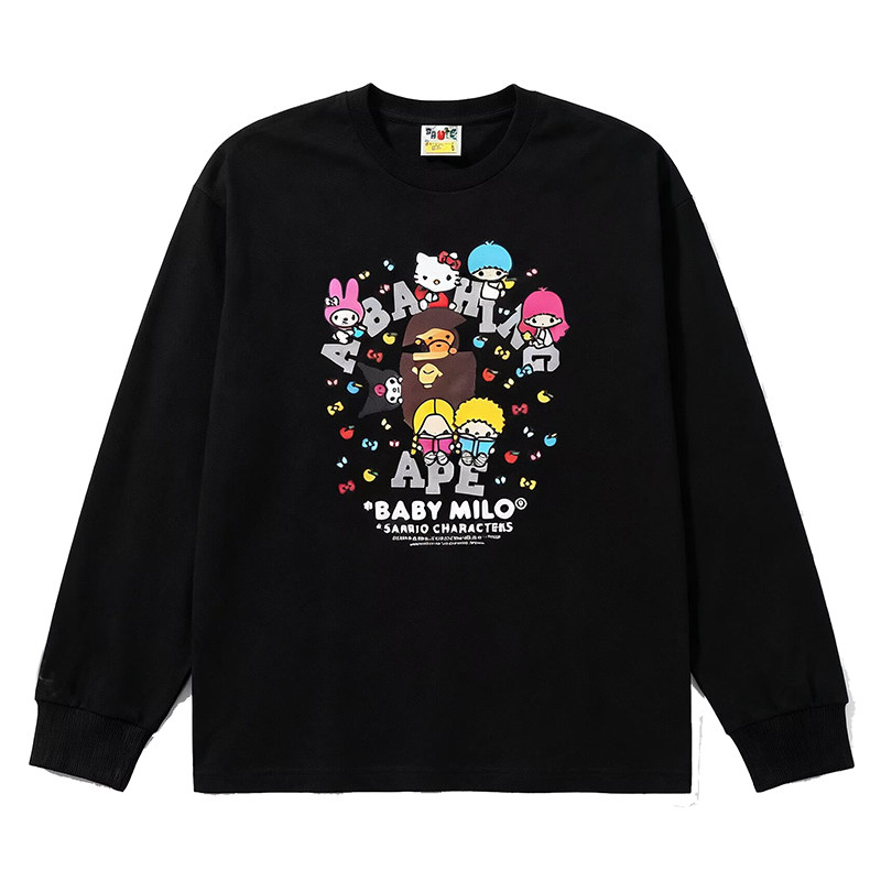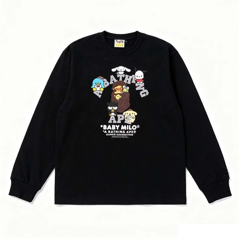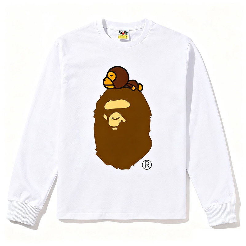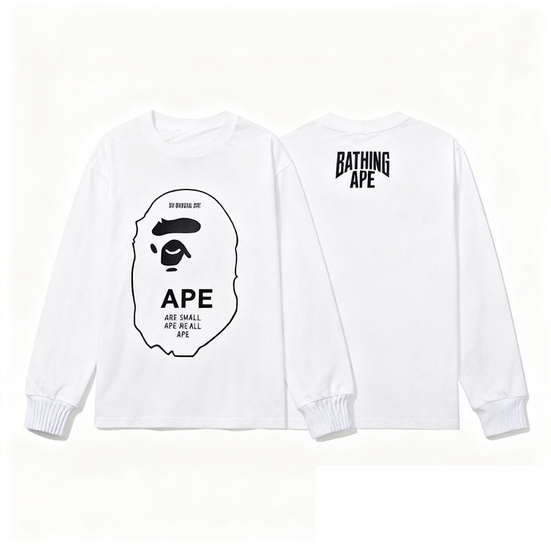 潮牌APE长袖t恤纯棉300g重磅高版本SHARK BAPE迷彩鲨鱼亲子打底衫