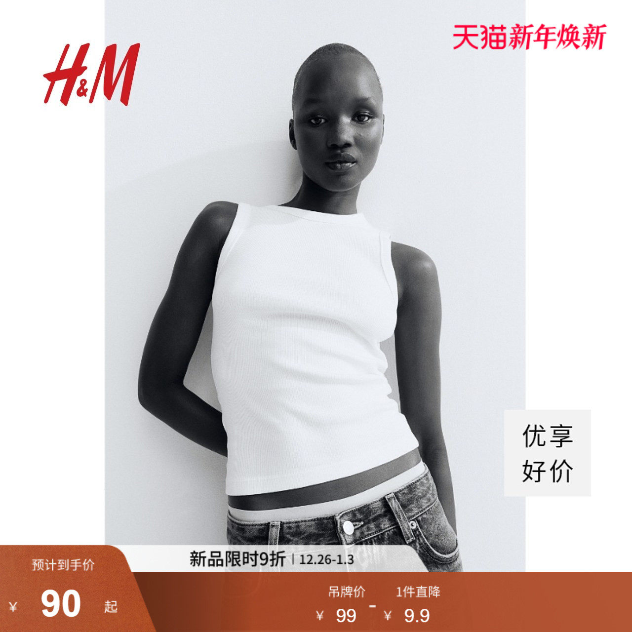 HM女装背心吊带冬季罗纹柔软舒适无袖白色背心1250800