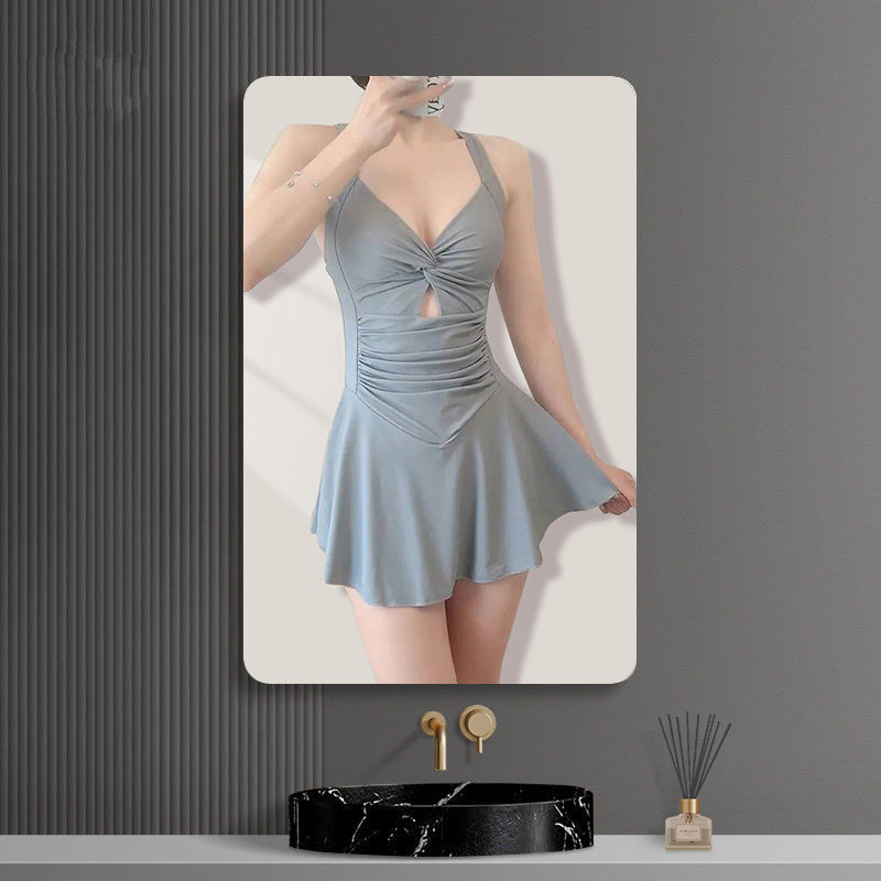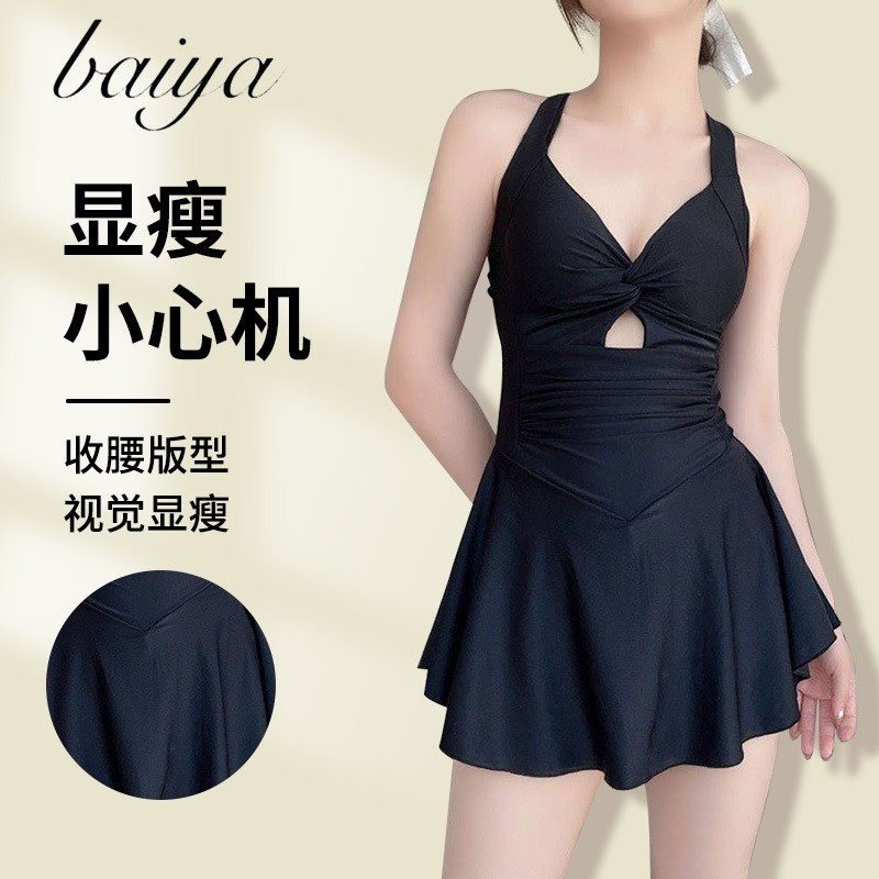 新款泳衣女连体保守显瘦裙式聚拢泳装夏季度假温泉游泳衣性感露背