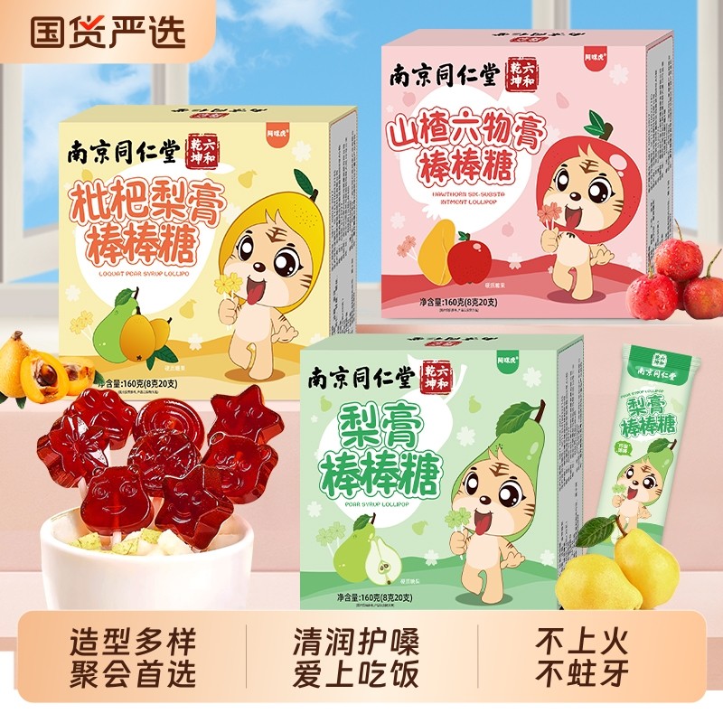 南京同仁堂秋梨膏山楂棒棒糖喜硬糖儿童解馋小零食糖果护嗓魅格格