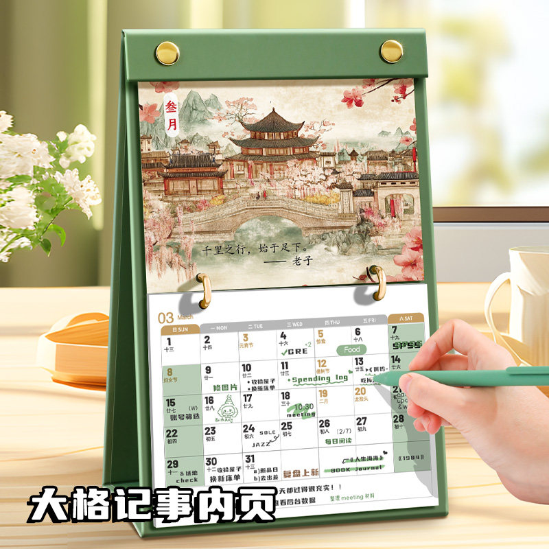 台历2026年新款日历定制logo创意简约小清新韩式办公年历个性中国风桌面摆件商务工作记事计划本订制广告月历