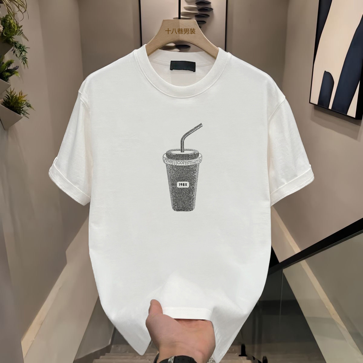 2025抖音爆款半袖休闲青春男女短袖t恤夏季重工烫钻体恤百搭上衣T