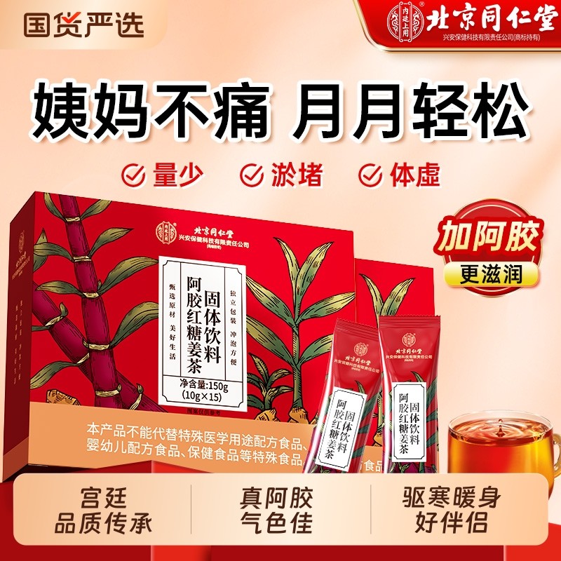 同仁堂阿胶红糖姜茶固体饮料红糖水大姨妈宫寒调理痛经补气养血