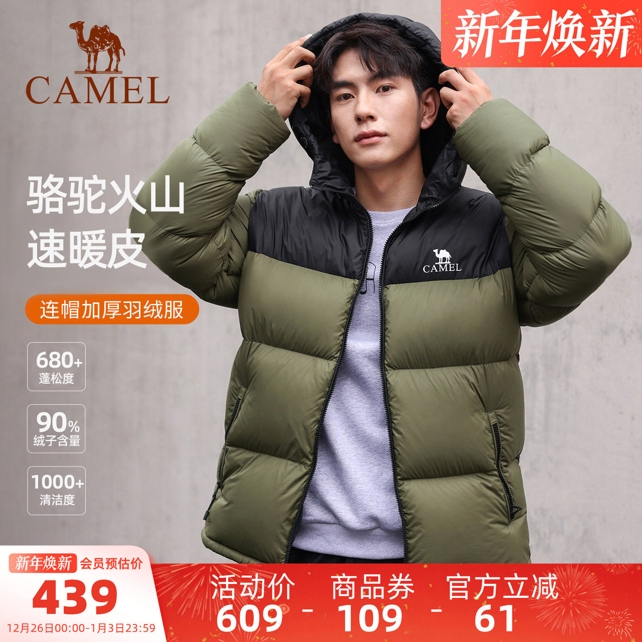 骆驼火山羽绒服男冬季2025新款加绒加厚保暖面包服短款连帽外套男