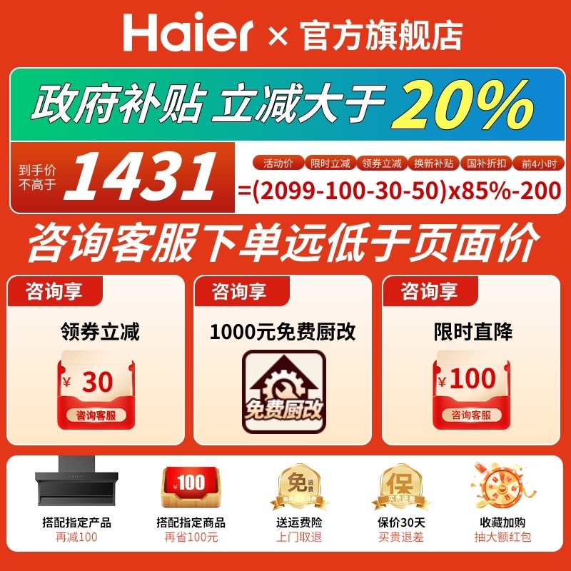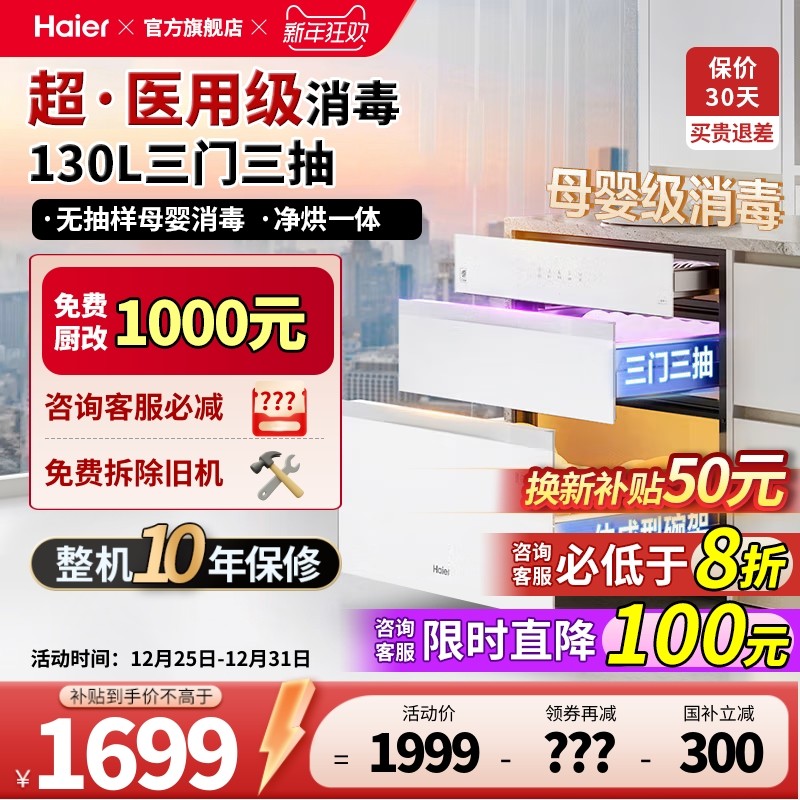 【麦浪系列】海尔消毒柜烘干一体大容量嵌入式厨房消毒碗柜EB130B