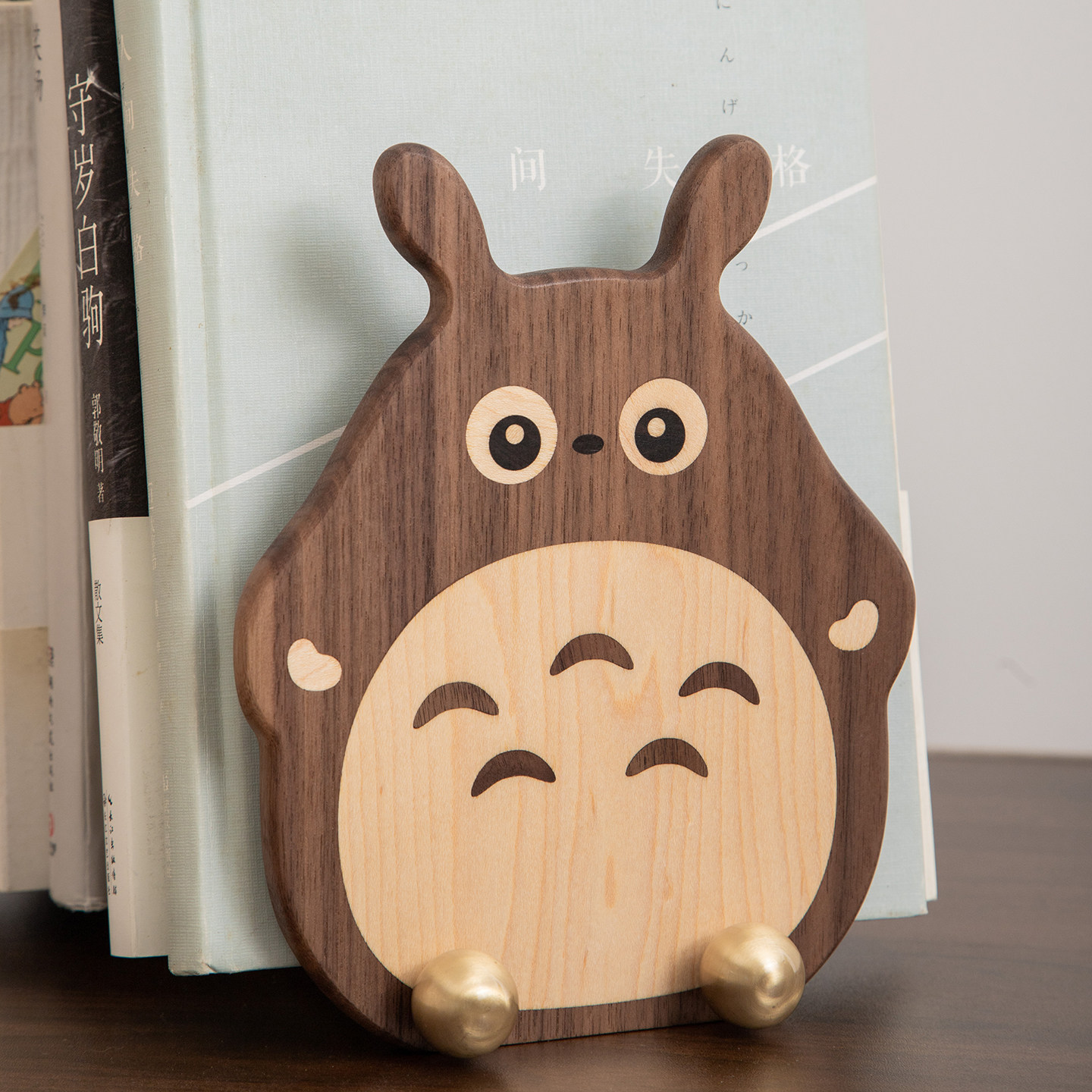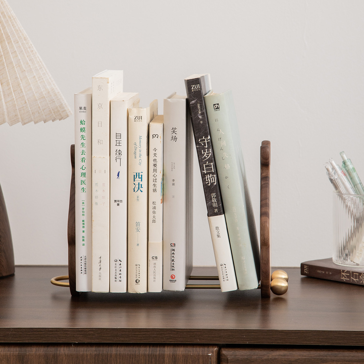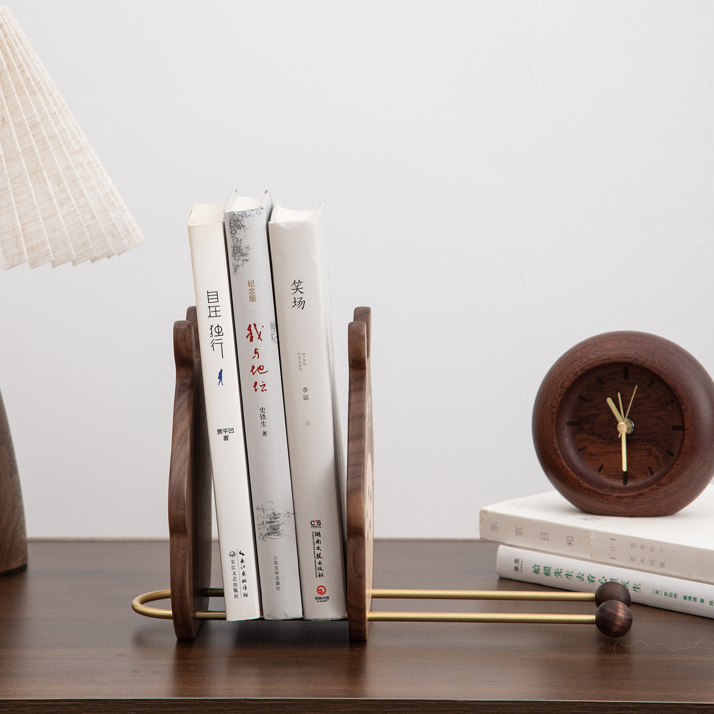 北美黑胡桃实木龙猫书立桌面书档书靠书本收纳架档书靠黄铜伸缩