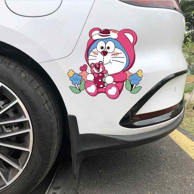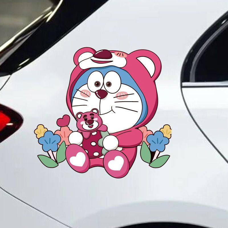 个性可爱车身车贴划痕遮挡 草莓熊哆啦a梦创意车贴防水防晒电动车