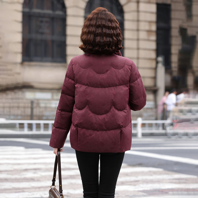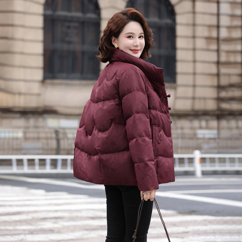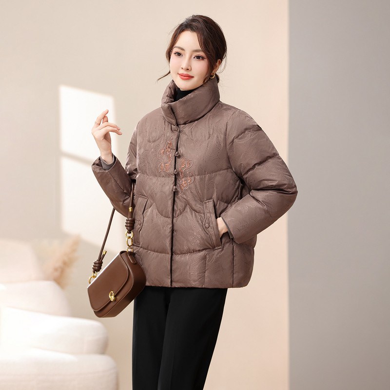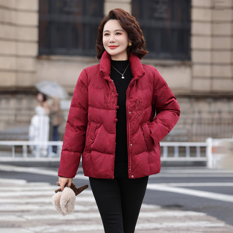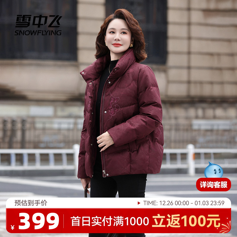 雪中飞2025冬新款女士中式妈妈短设计感羽绒服花纹盘扣气质保暖
