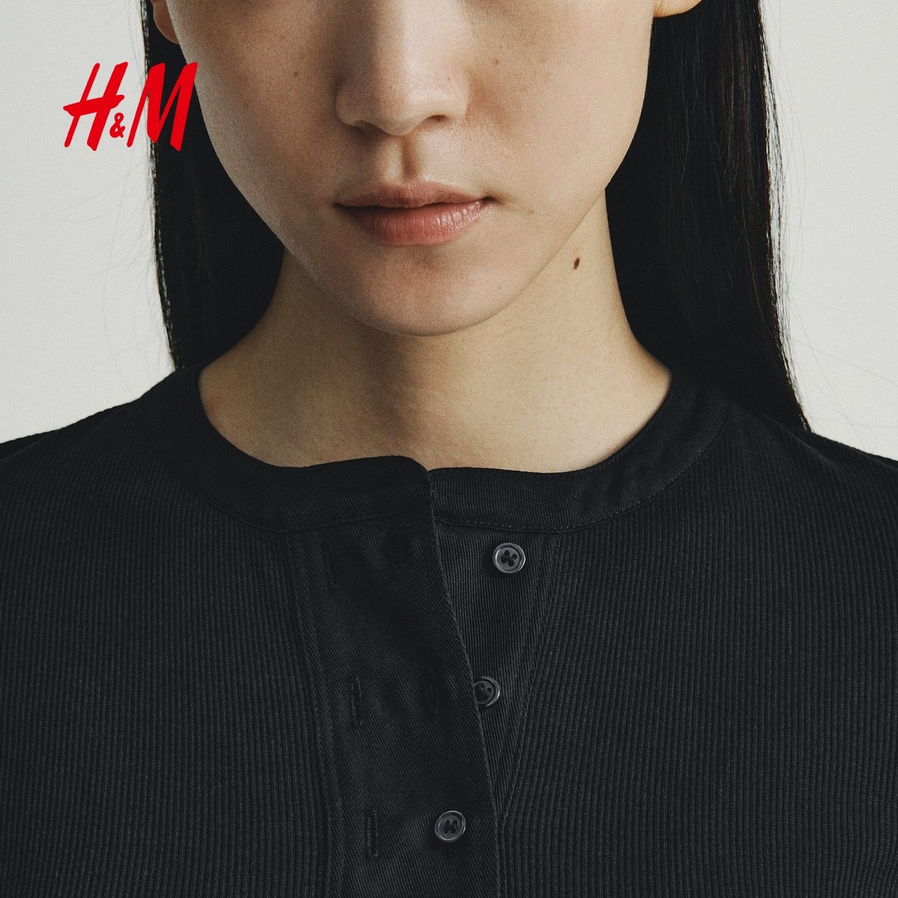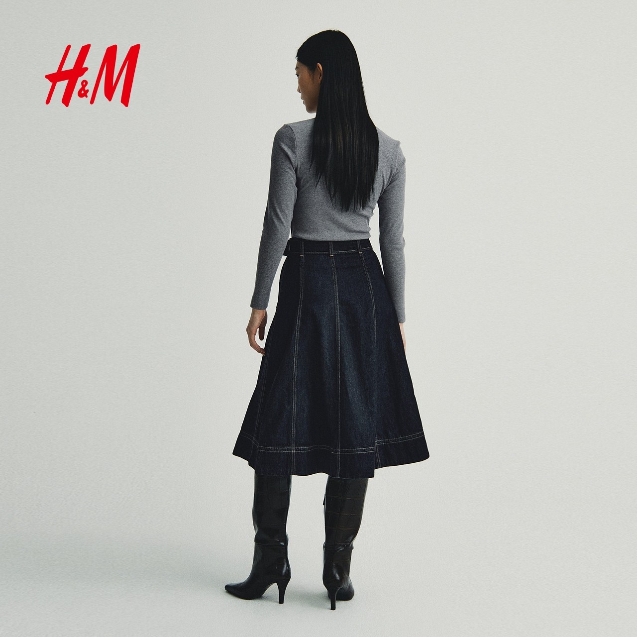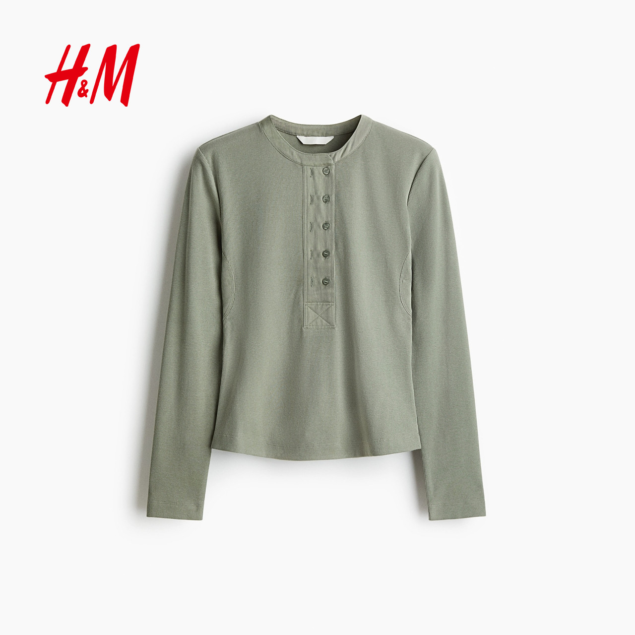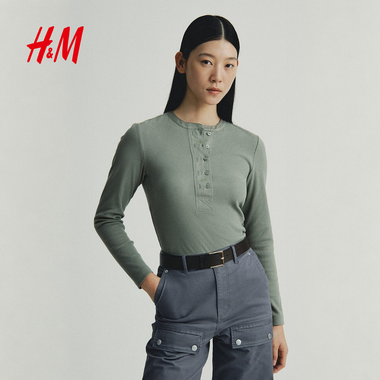 HM女装毛针织衫2025新款气质里外皆暖穿搭罗纹针织打底衫1317323