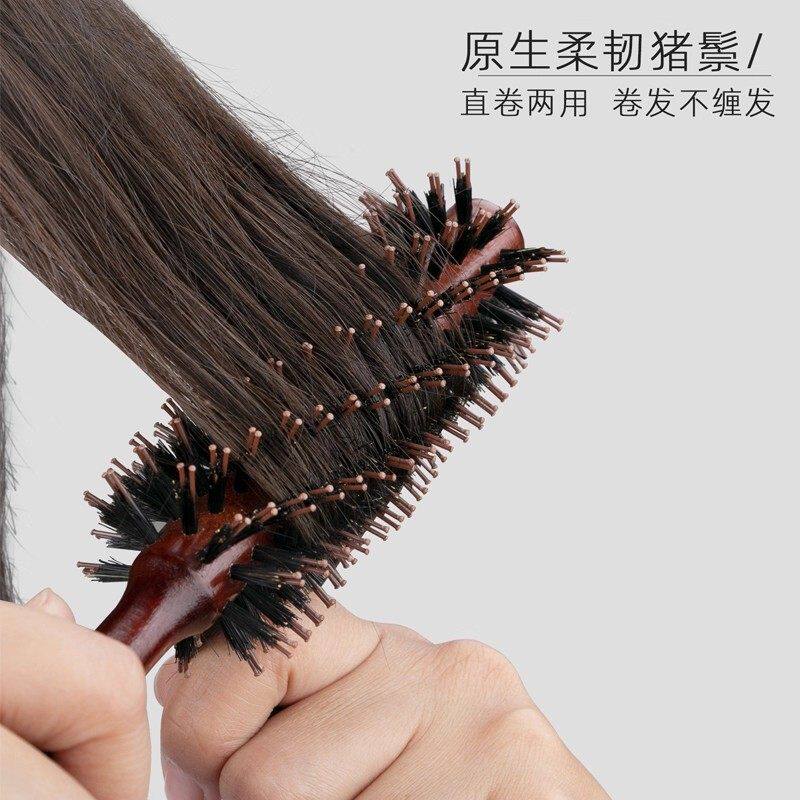 卷发梳女猪鬃毛木梳滚梳子女内扣刘海蓬松发廊男理发店发型造型