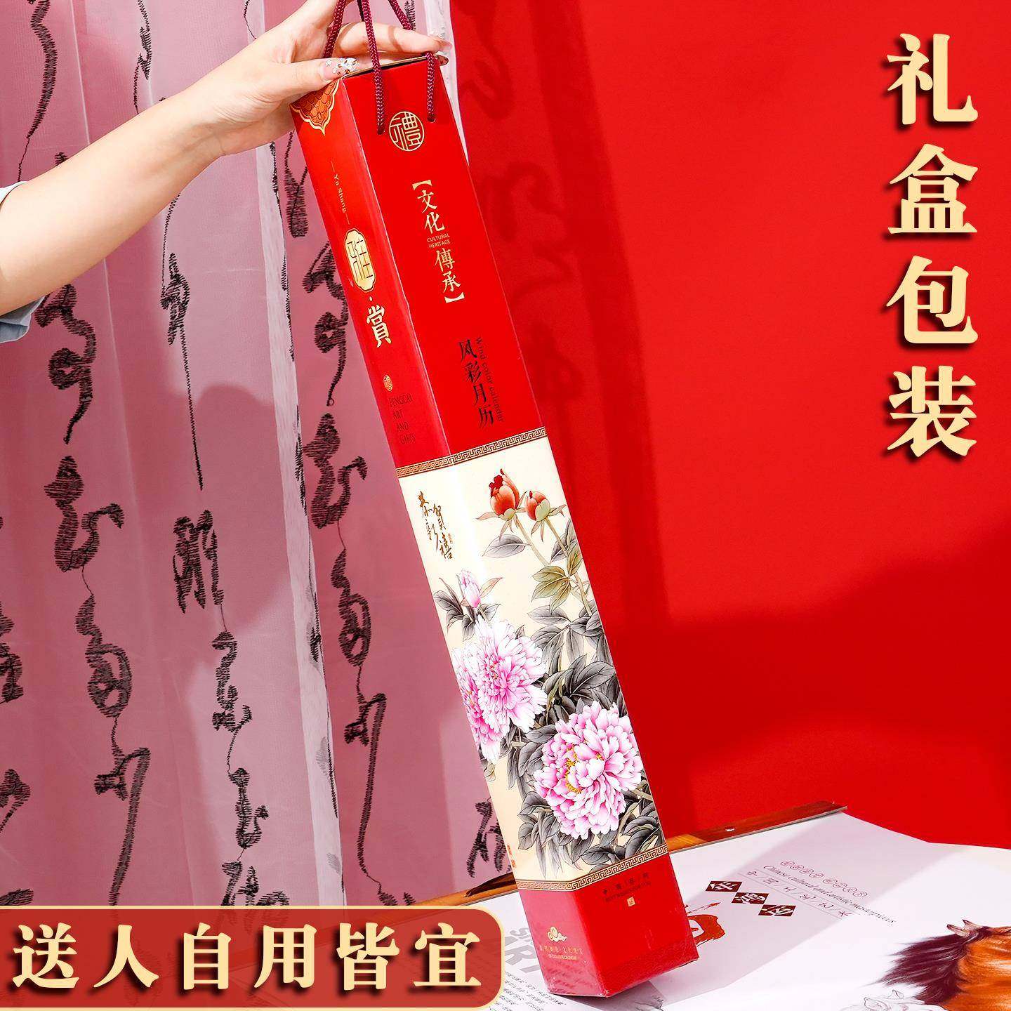 挂历2026年新款马年牡丹日历定制布艺高档大尺寸挂历2026家用挂墙装饰画打卡记事本中国风空白山水画新年礼物