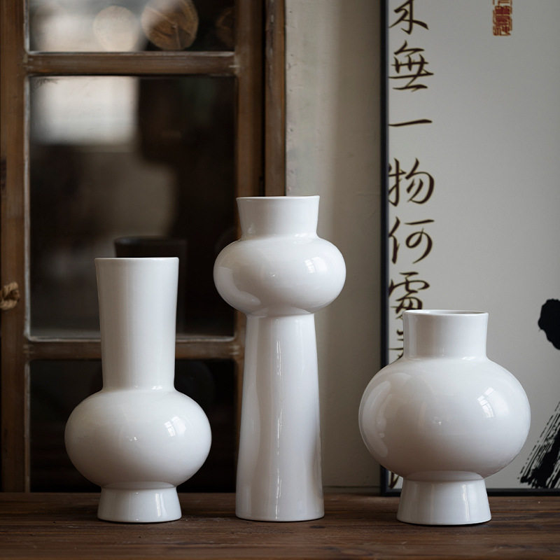 景德镇现代简约陶瓷花瓶高级感白色桌面花器客厅书房插花装饰摆件