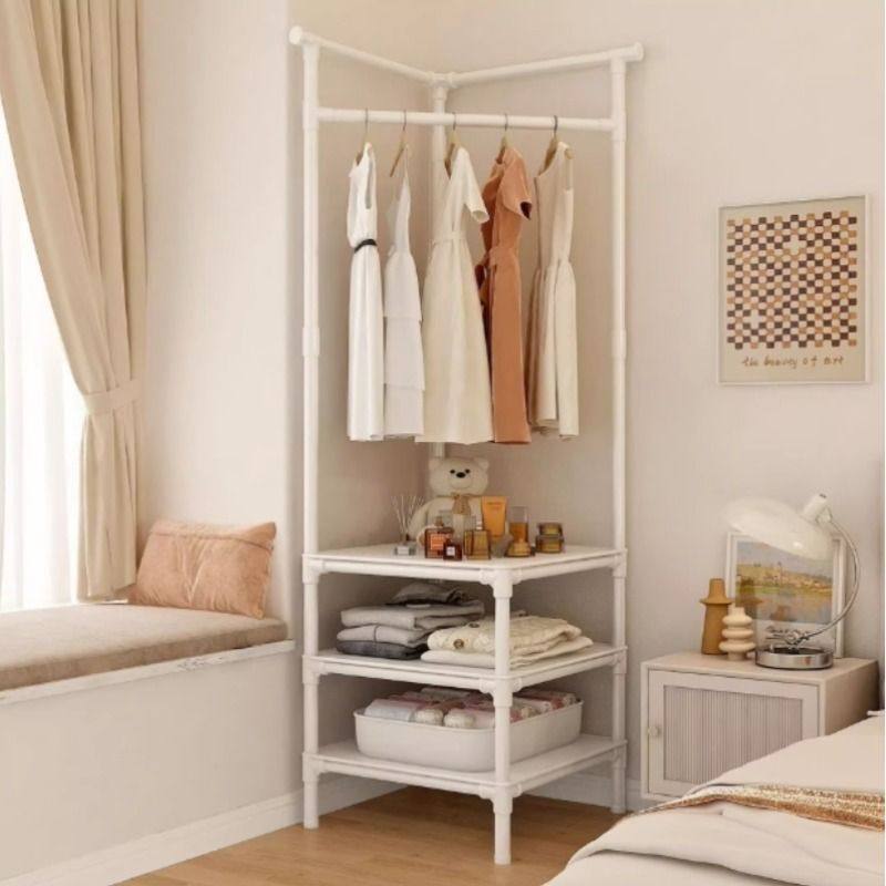 转角衣帽架落地家用卧室挂衣架床头放衣服简易置物架墙角鞋帽架子