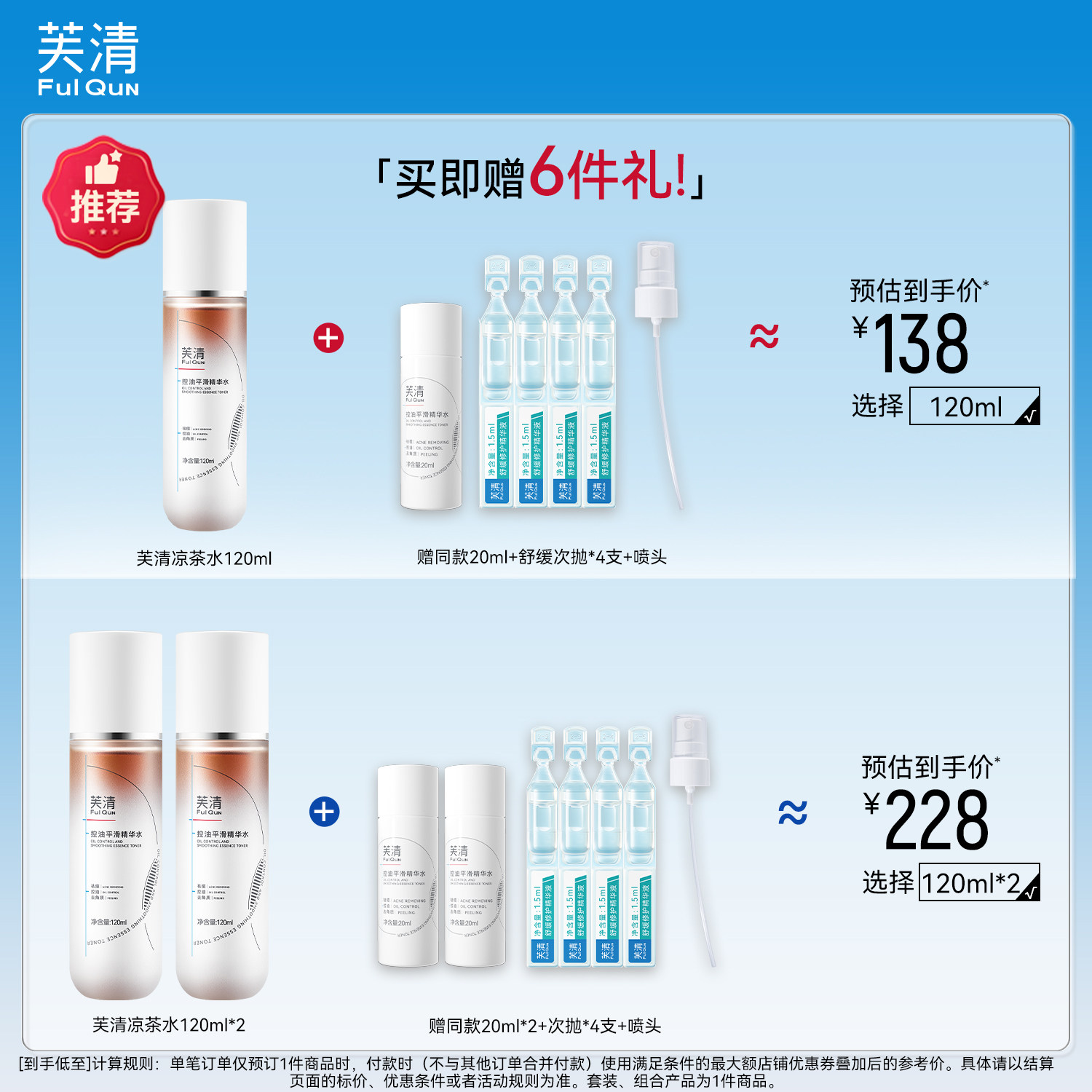 芙清凉茶精华水湿敷祛痘控油爽肤水女补水保湿去闭口官方旗舰店