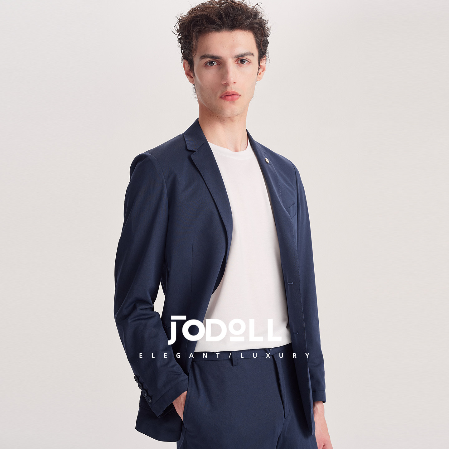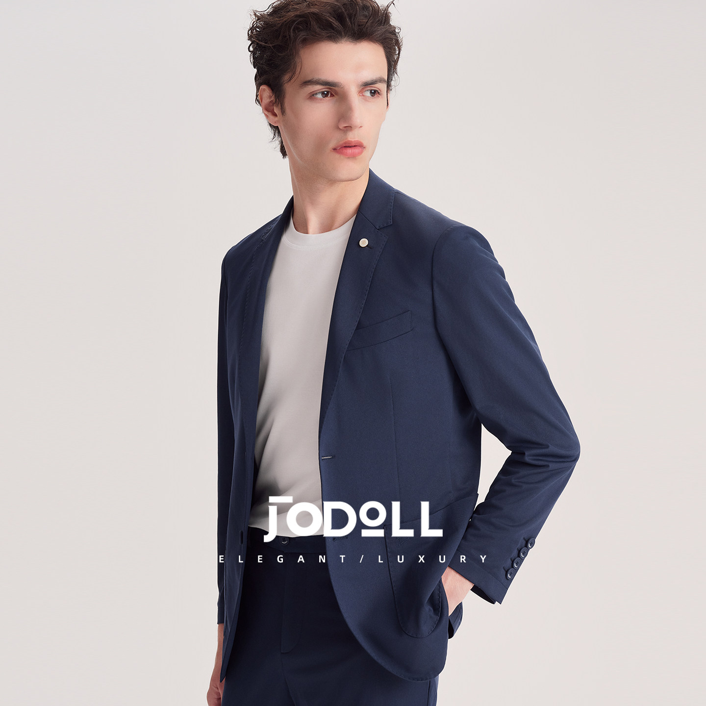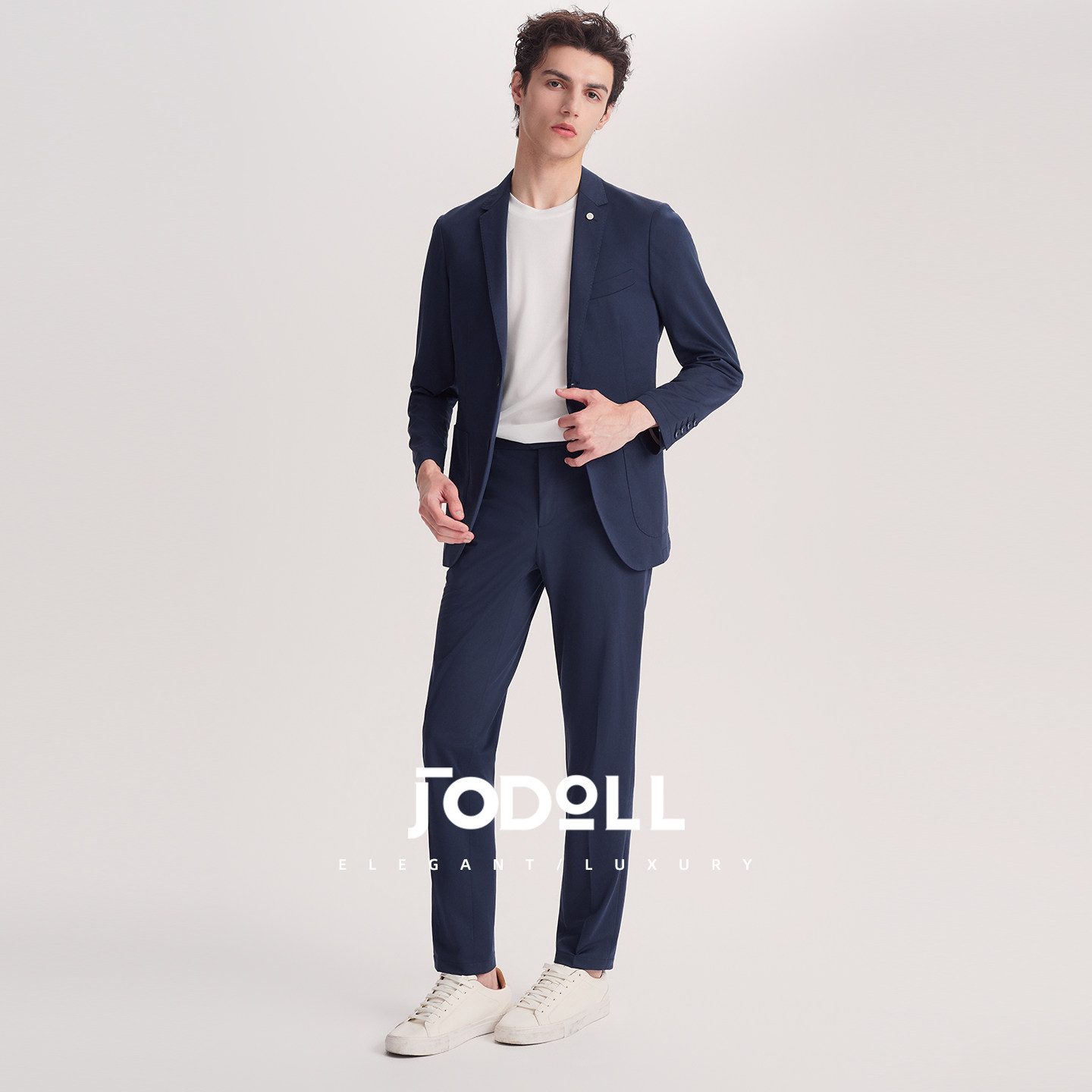 乔顿2025秋冬男士商务休闲弹力修身西服百搭藏青色平驳领小西装