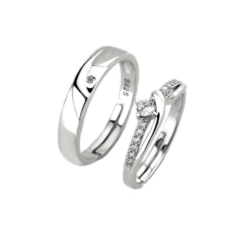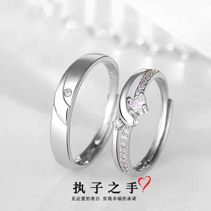 丽铭银饰s925纯银情侣戒指一对微镶简约求婚活口男女对戒饰品批发