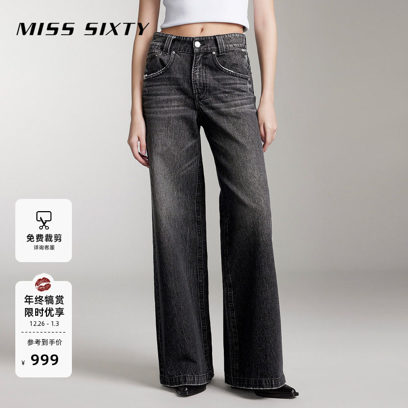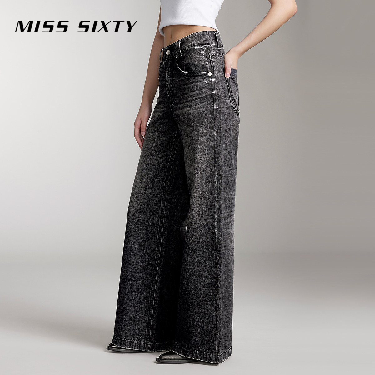 【进口牛仔面料】[低腰]Miss Sixty牛仔裤复古显瘦磨破微喇叭裤