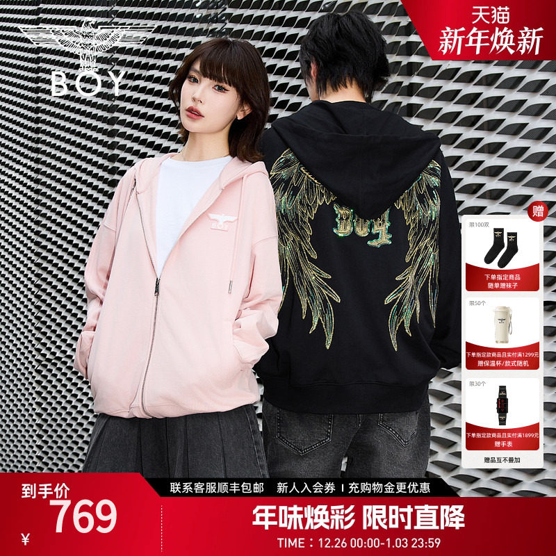 【灿若繁星】BOYLONDON春情侣风外套潮牌刺绣开衫连帽卫衣N06904